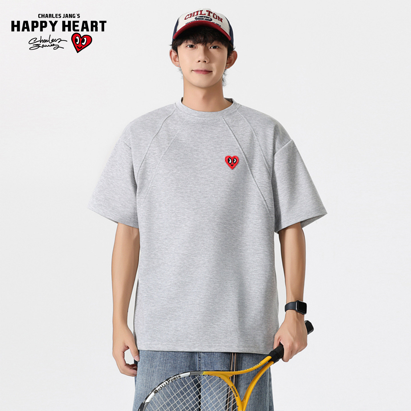 查尔斯桃心新款圆领短袖T恤男夏季爱心刺绣解构纯色百搭情侣上衣