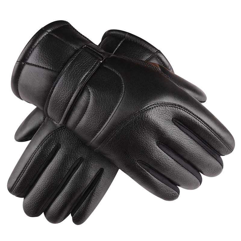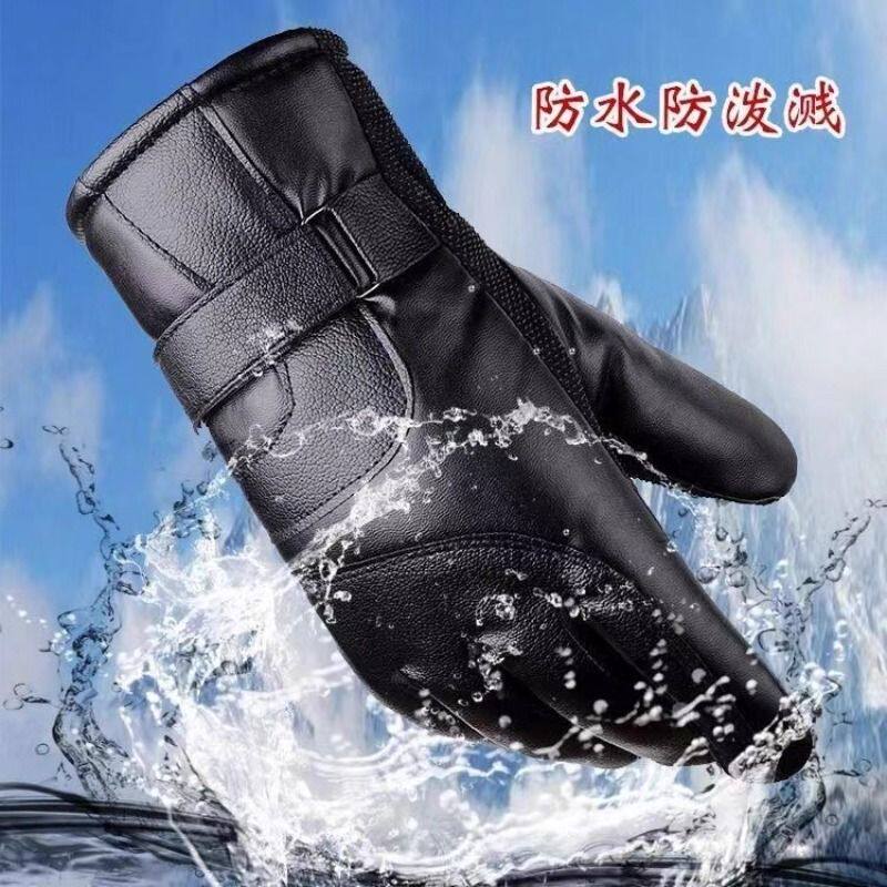 皮手套男冬季加绒加厚防水保暖触屏电动摩托车女士天抗寒骑车黑色
