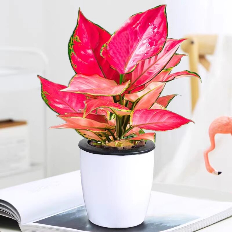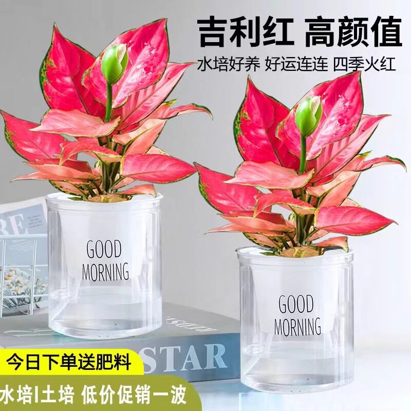 吉利红如意盆栽水培绿植物竹芋绿萝办公室内桌面好养文竹红掌花卉