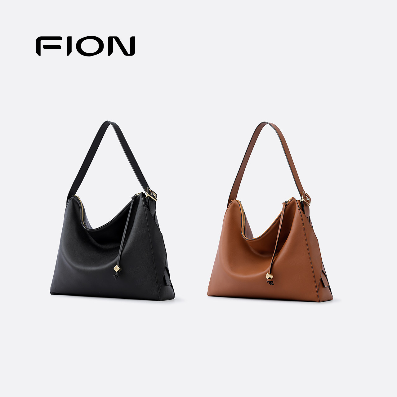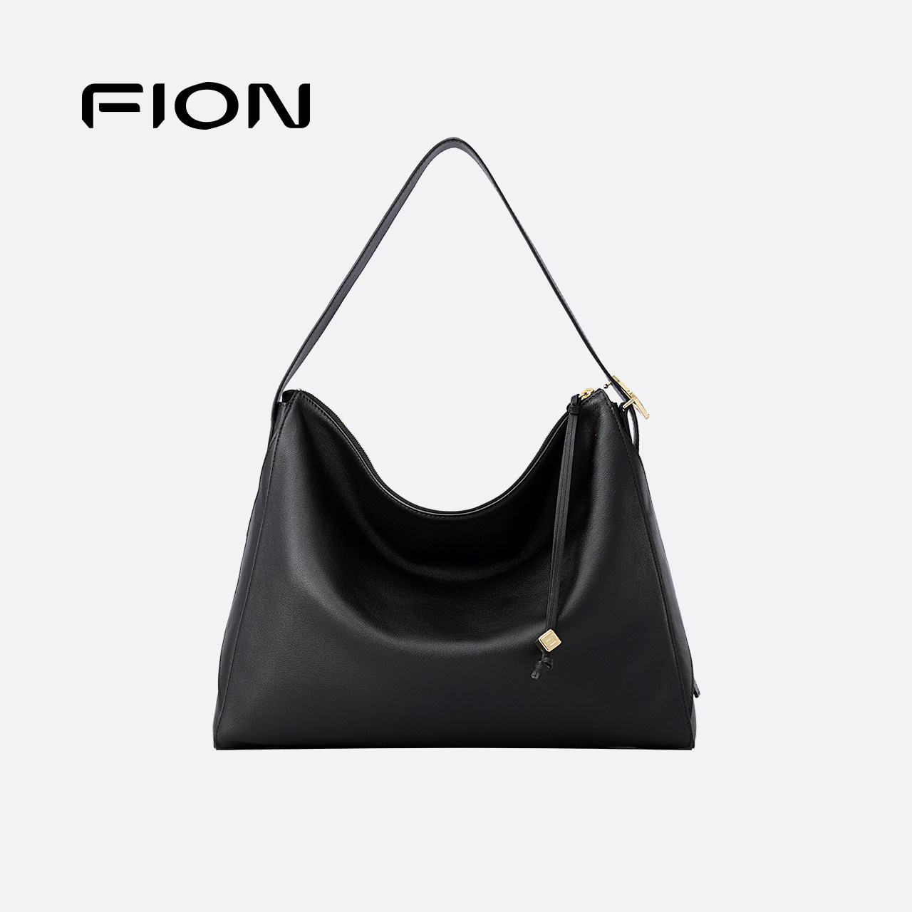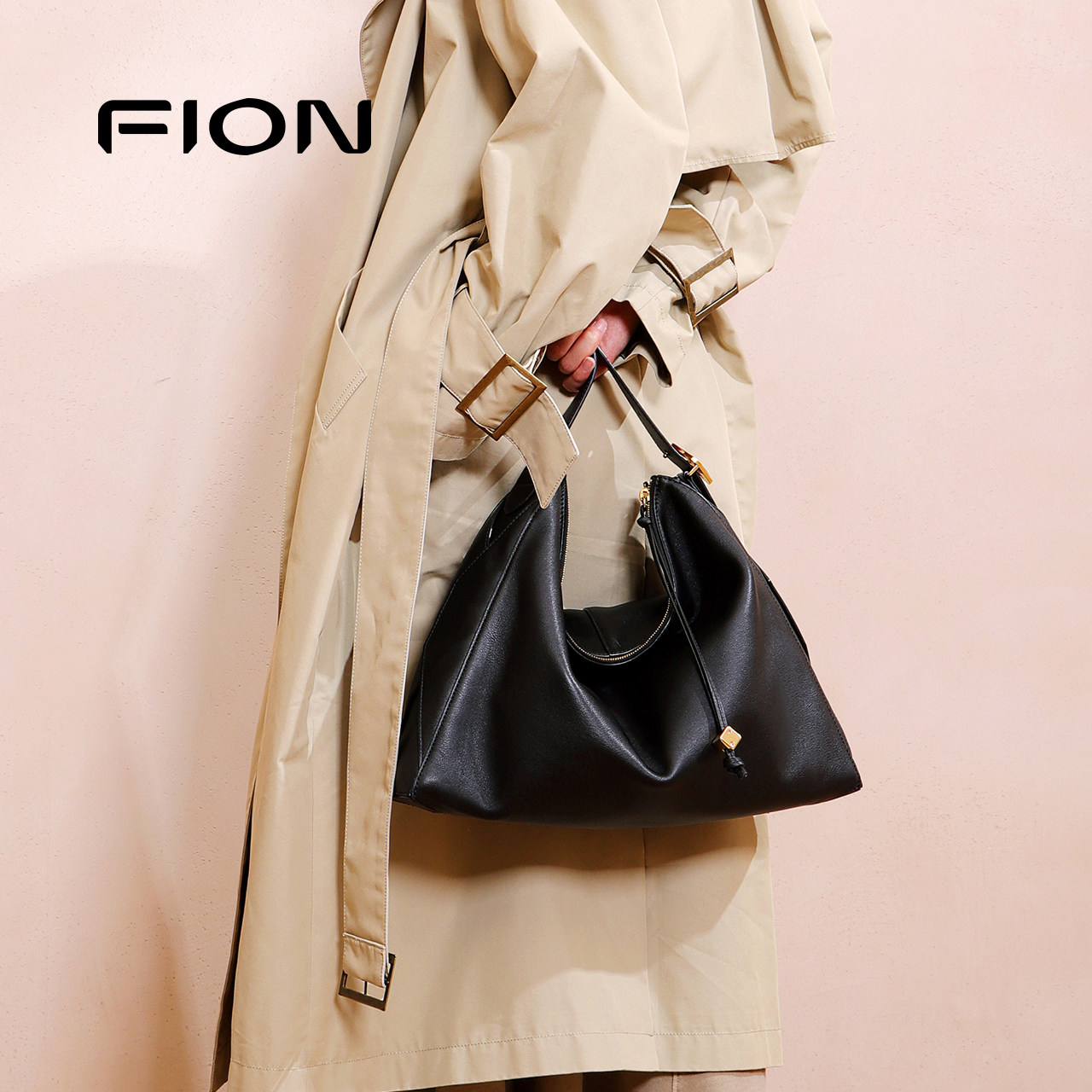 Fion/菲安妮女包真皮托特包大容量通勤单肩斜挎包休闲叠叠腋下包