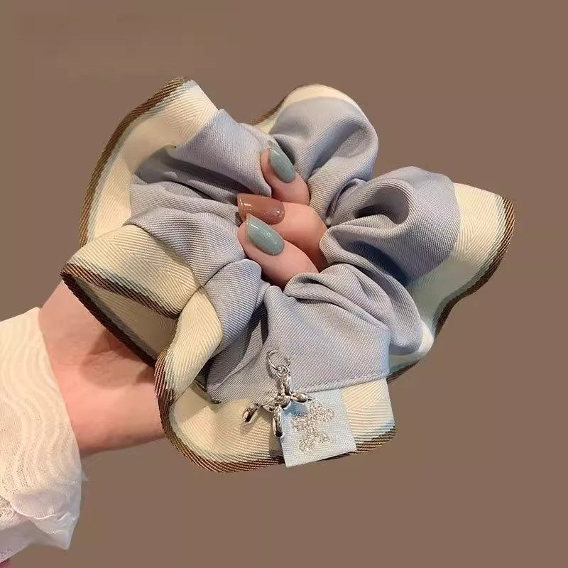 韩系小清新蓝灰色大肠发圈气质甜美低马尾扎发头绳发绳高级感肠圈
