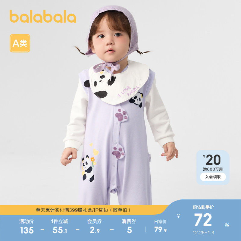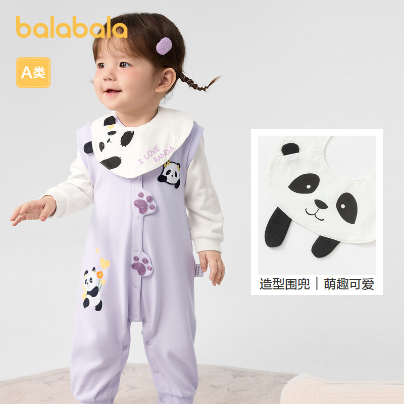 巴拉巴拉婴儿衣服连体衣秋装宝宝外出包屁衣立体围兜可爱清新甜美