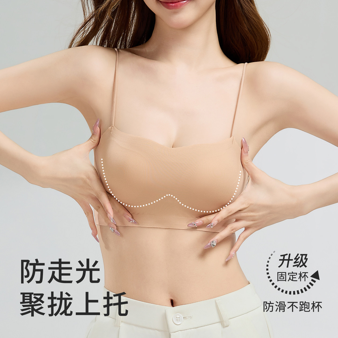 无痕美背抹胸内衣女小胸聚拢可外漏细肩带一体固定杯背心式文胸罩