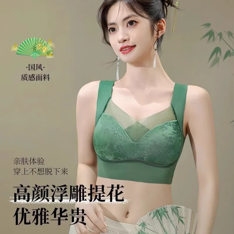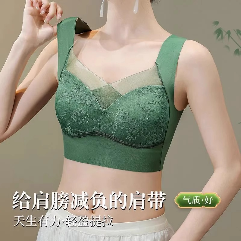 无钢圈文胸无痕全罩杯防下垂收副乳裹胸聚拢美背内衣女薄款背心式