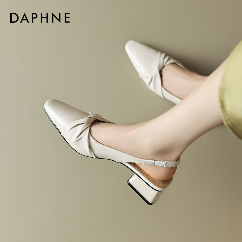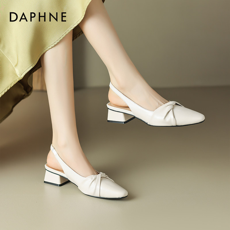 达芙妮包头凉鞋女夏季尖头软皮粗跟不累脚外穿2026新款女鞋配裙子