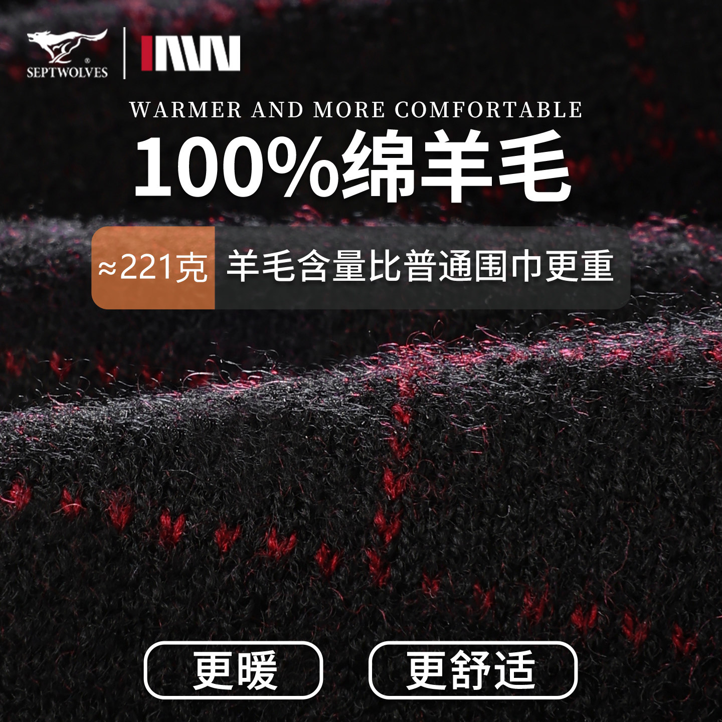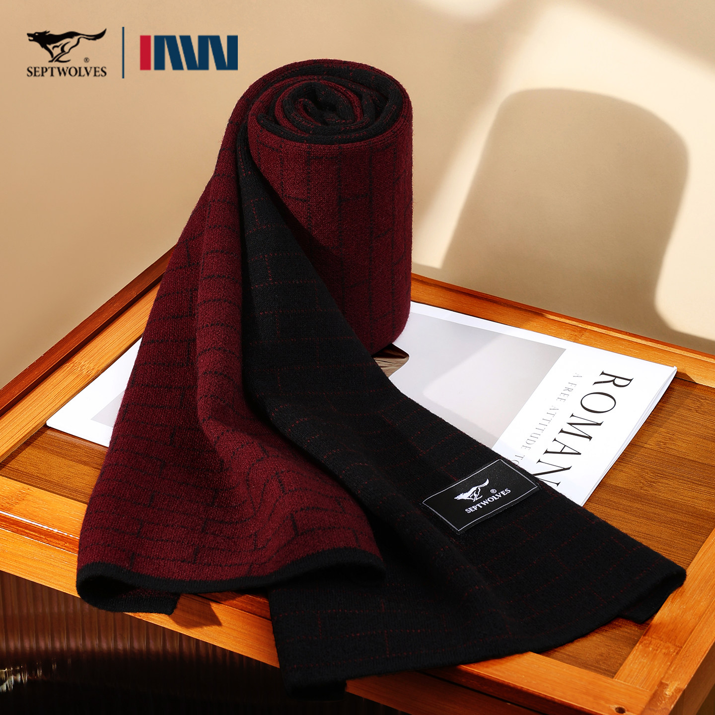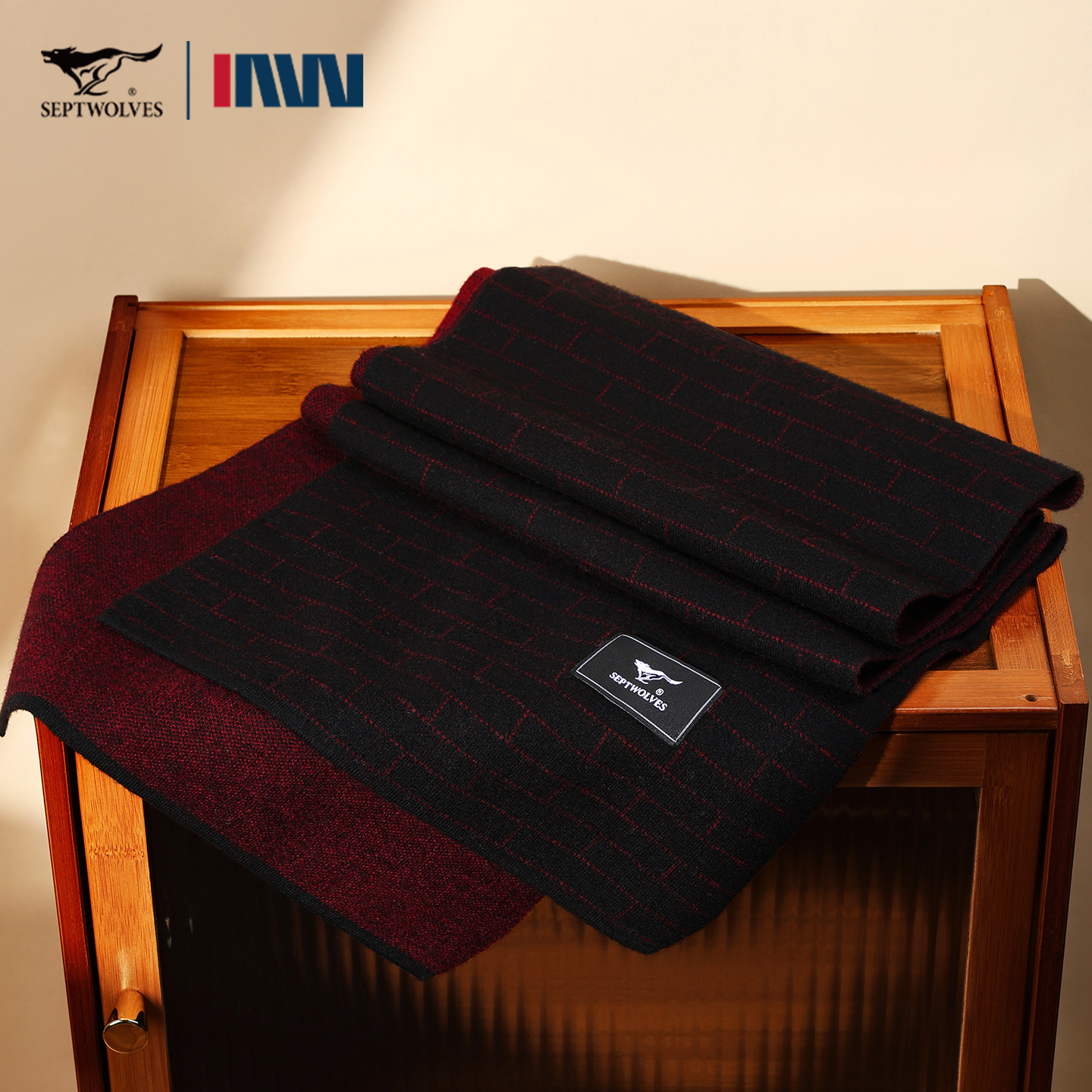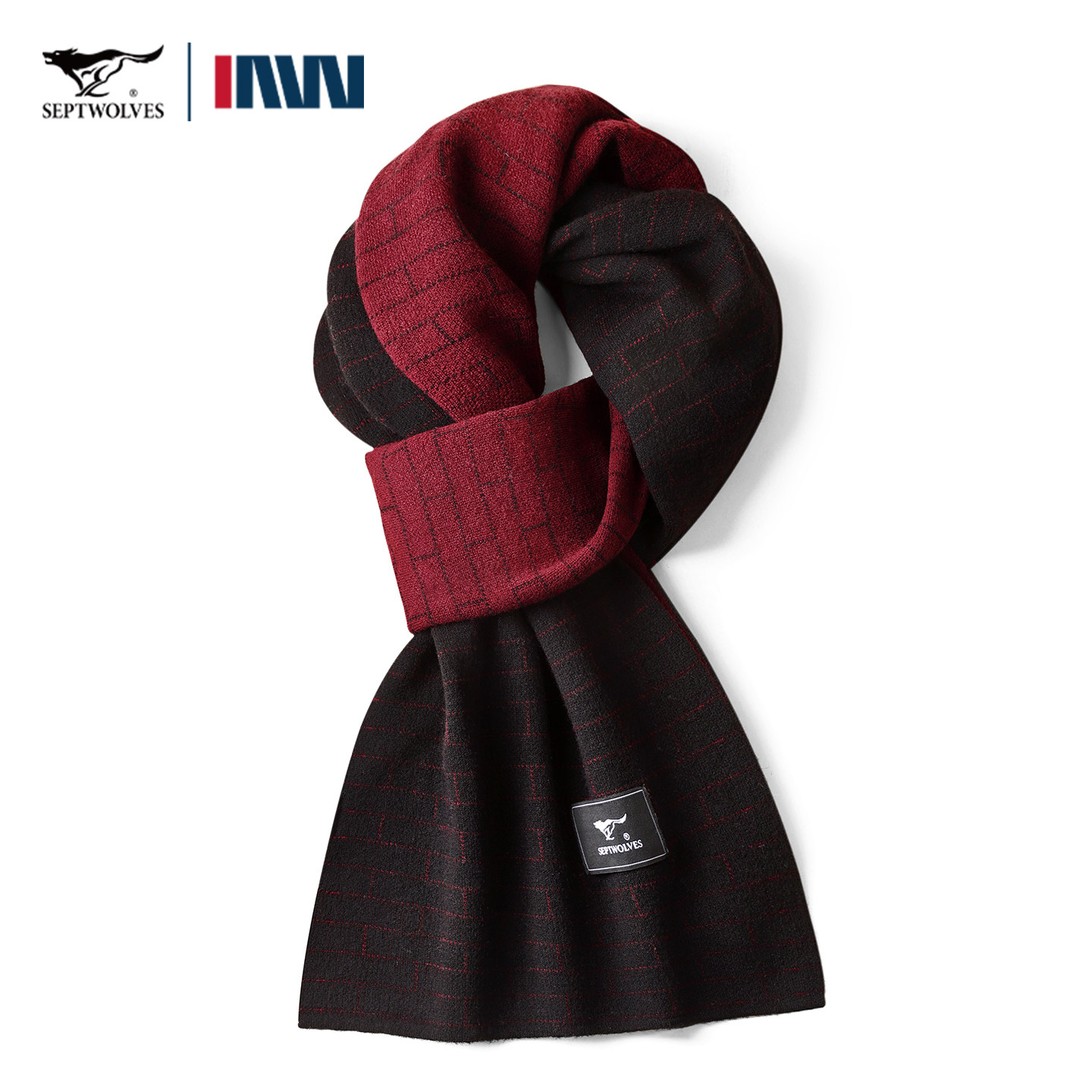 七匹狼围巾男款针织拼色高级感红色本命年纯羊毛围脖送父亲礼盒装
