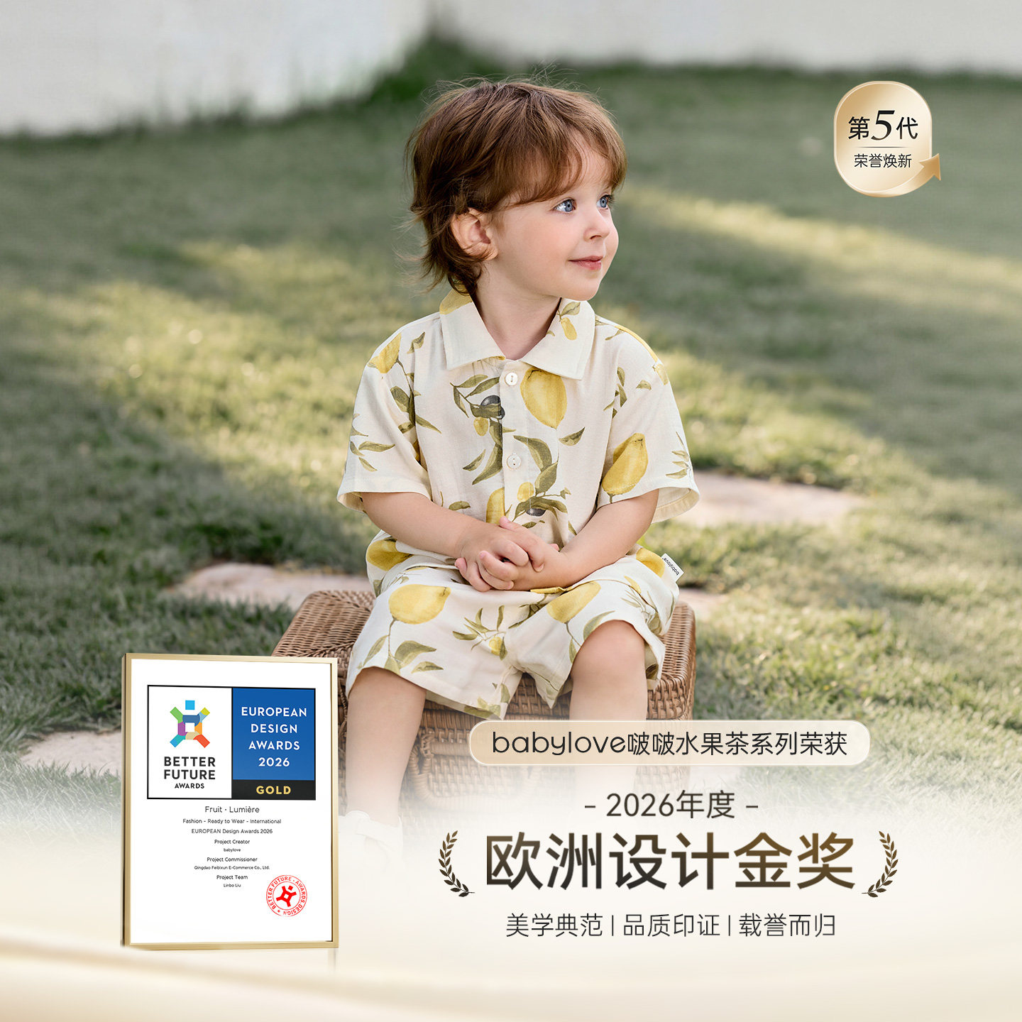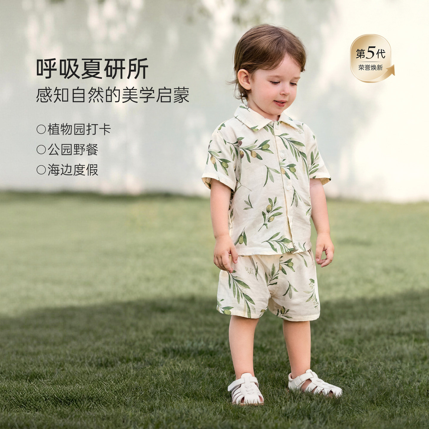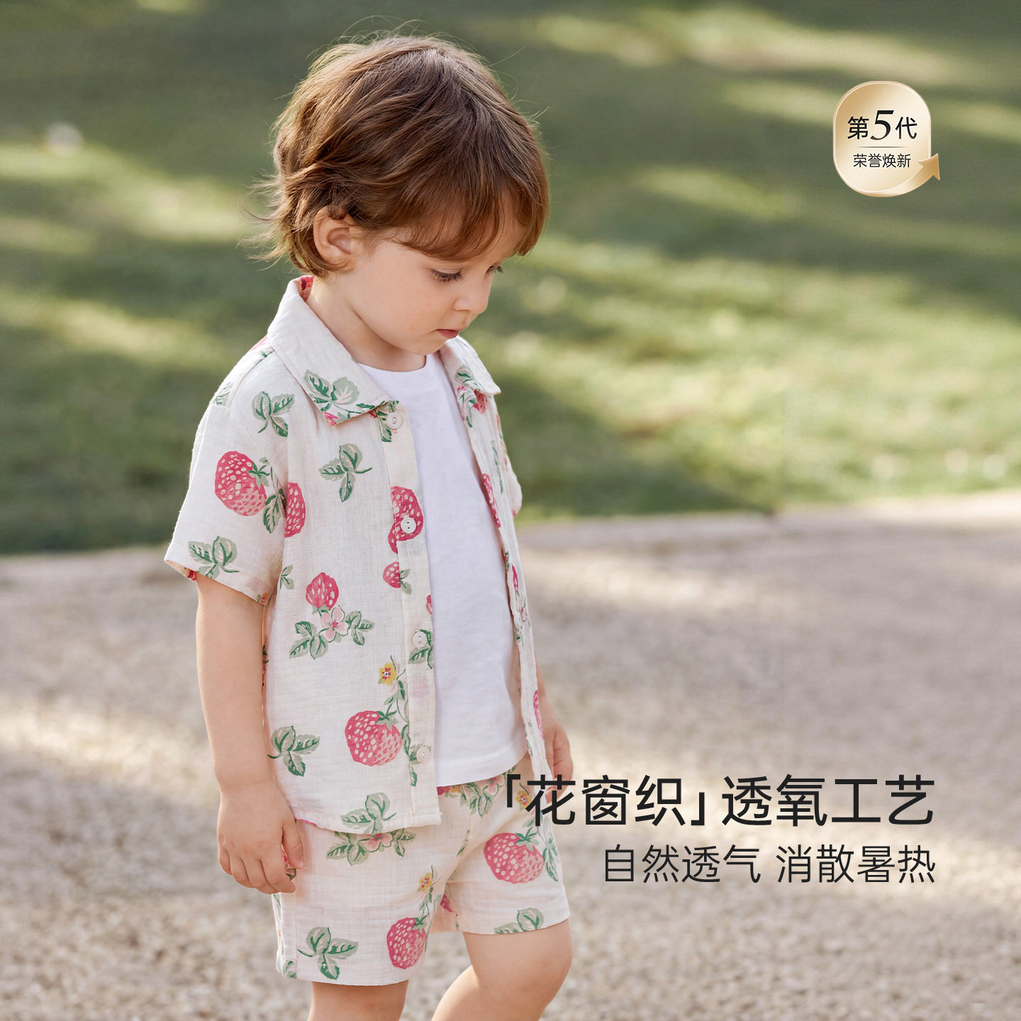 babylove啵啵水果茶套装宝宝夏薄款竹棉山茶纱布短袖短裤两件套