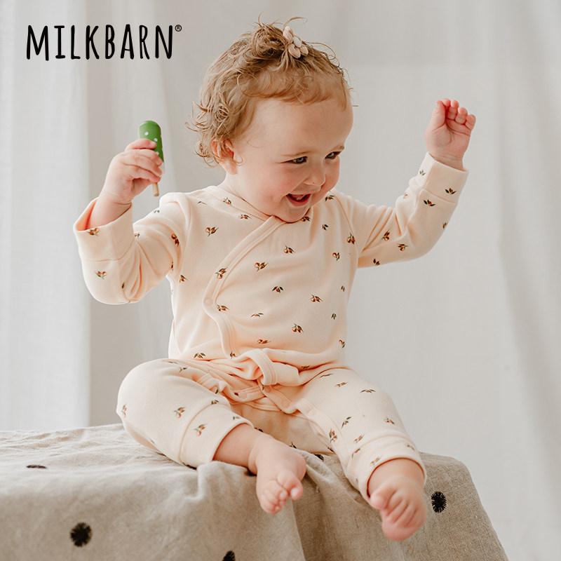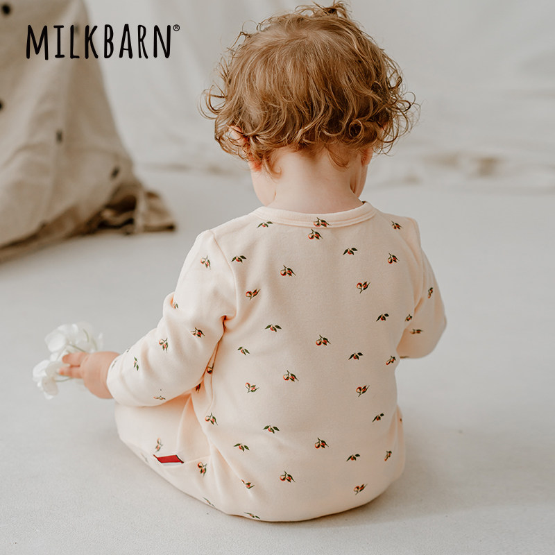 Milkbarn秋季婴儿连体服新生儿德绒侧开襟哈衣宝宝爬爬服