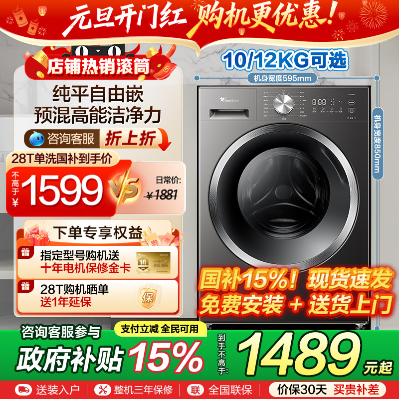 小天鹅洗衣机官方旗舰店正品10/12KG全自动家用滚筒洗烘脱一体28T