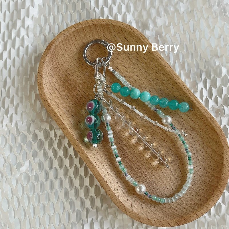 原创清透薄荷甜心琉璃天然石水晶手工串珠手机链挂链包包挂件配饰