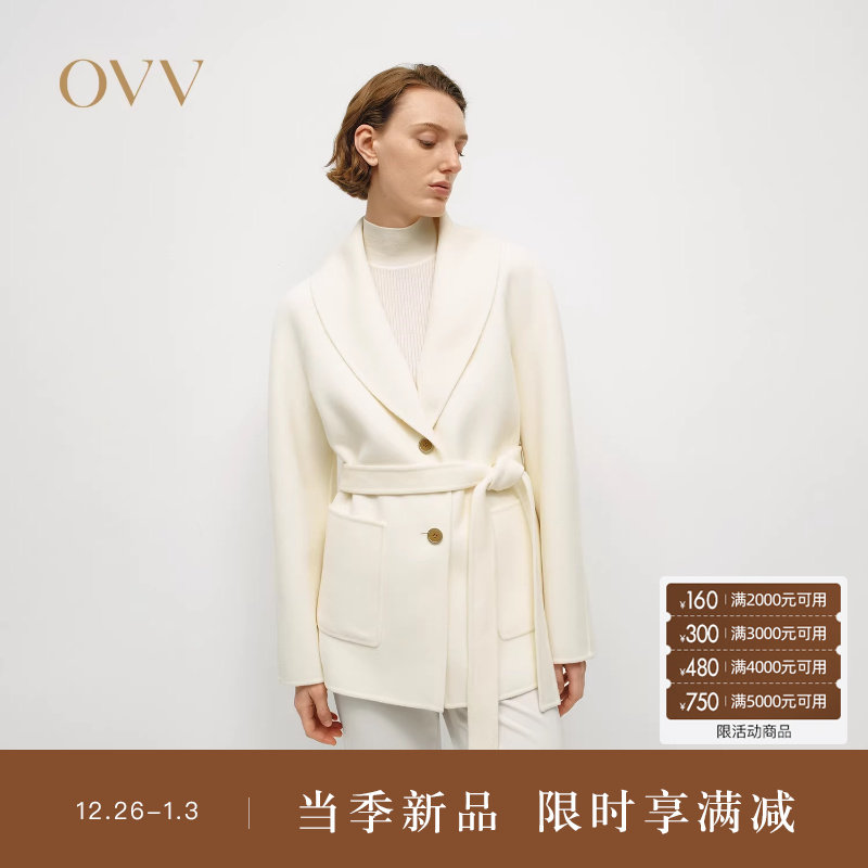 OVV秋冬热卖女装简约优雅青果领短款羊毛双面呢大衣