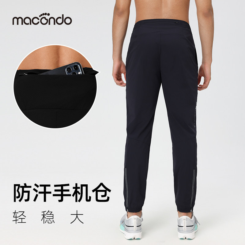 马孔多男子运动梭织长裤防汗手机仓吸湿速干透气高弹户外跑步裤