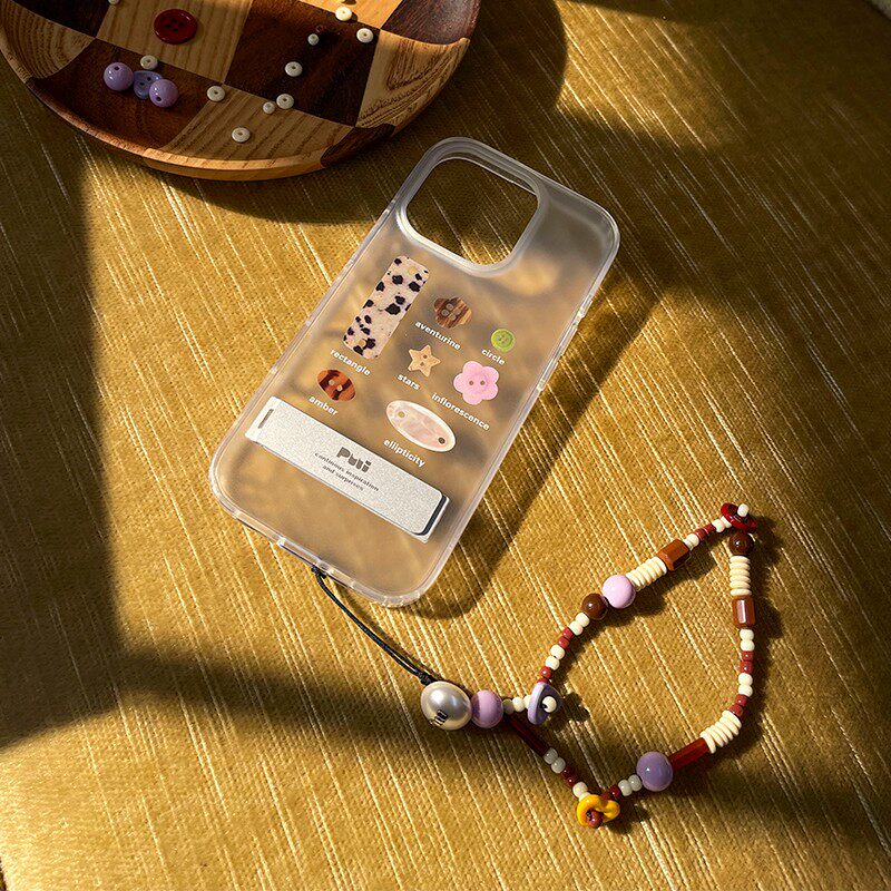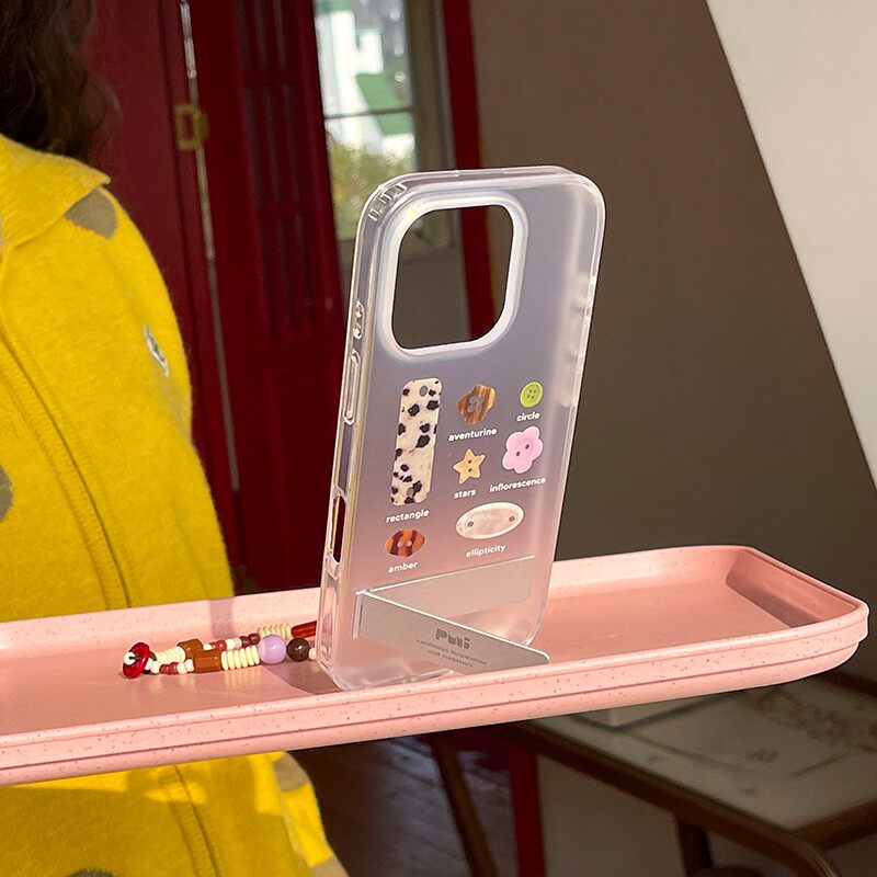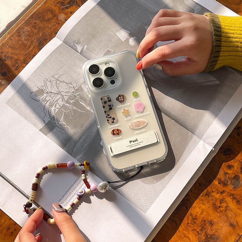 Puui原创纽扣苹果简约磨砂全包保护壳16promax苹果15promax质感17promax透明iphone小众带链条支架手机壳