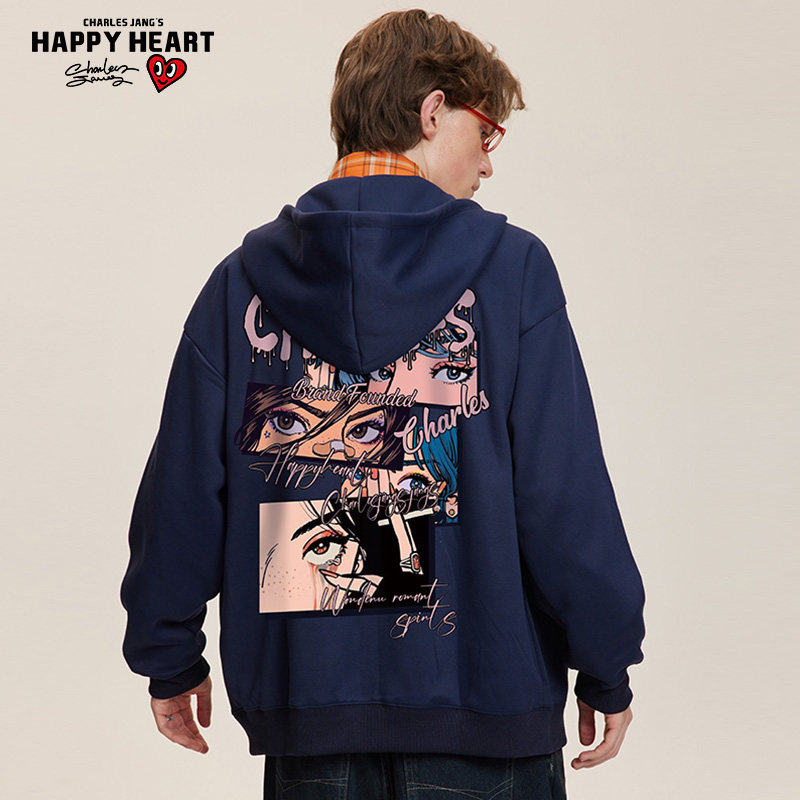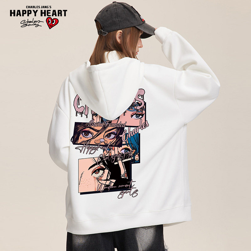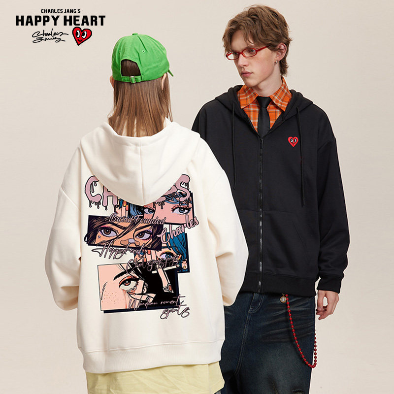 查尔斯桃心 美式动漫印花爱心连帽开衫卫衣男女春秋季百搭外套