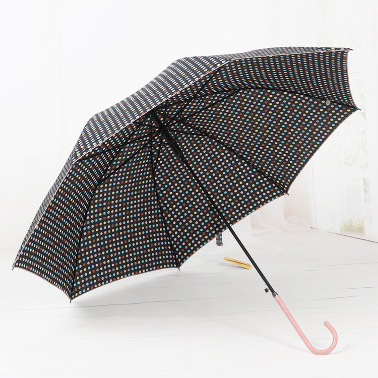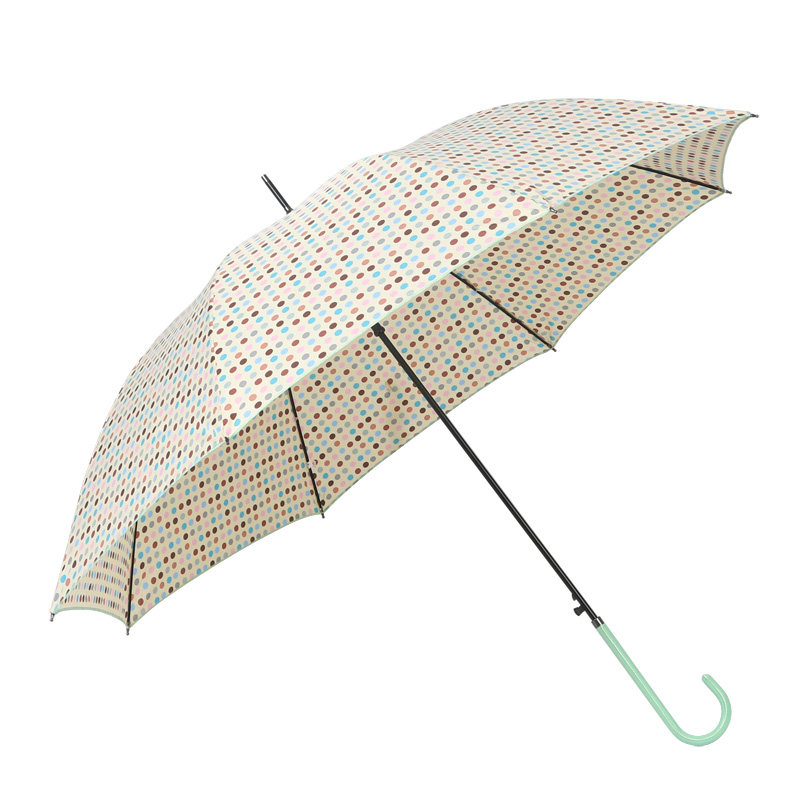 太阳城洋伞旭日系列直杆自开彩色圆点女士一甩干拒水长柄晴雨伞