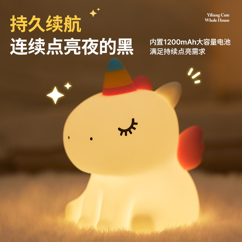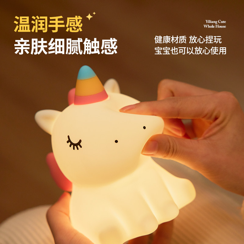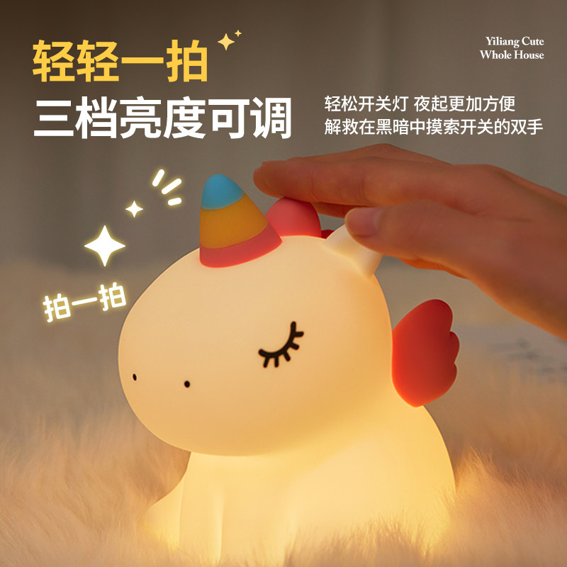 独角兽卡通可爱柔光拍拍灯婴儿伴睡高颜值卧室摆件台灯硅胶小夜灯