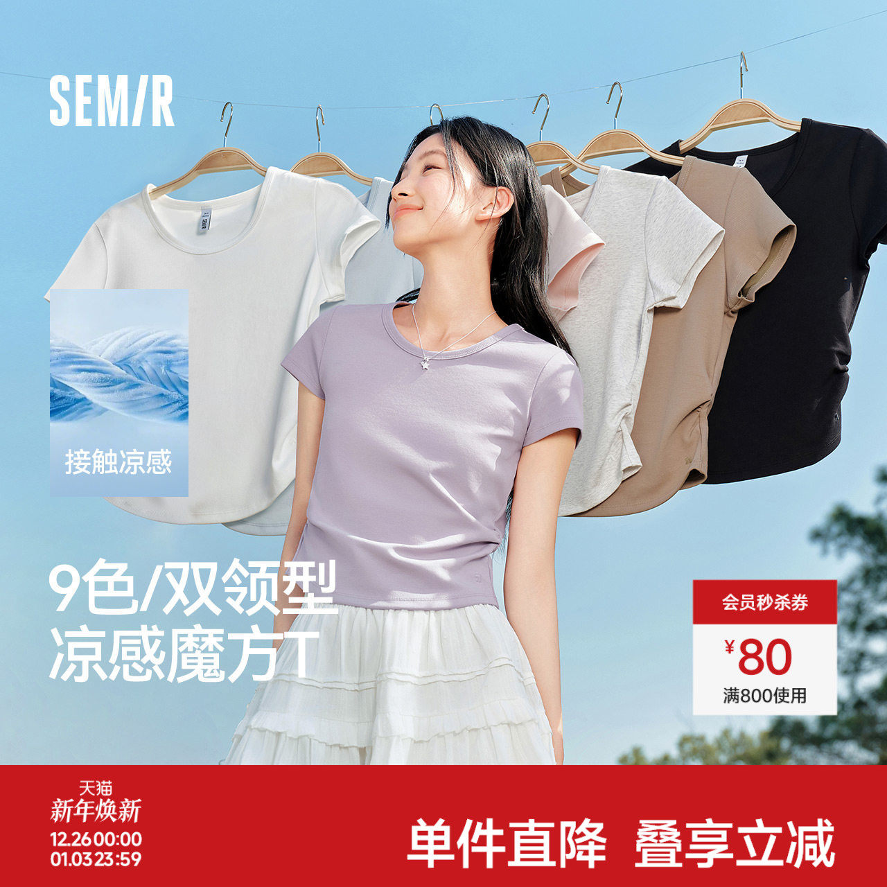 凉感T森马短袖T恤女短款修身正肩收腰2025夏新款上衣百搭白色体恤