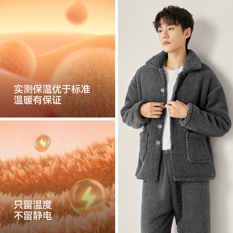 肖战同款猫人暖绒绒家居服半边绒男女2025新款冬季睡衣可外穿加厚