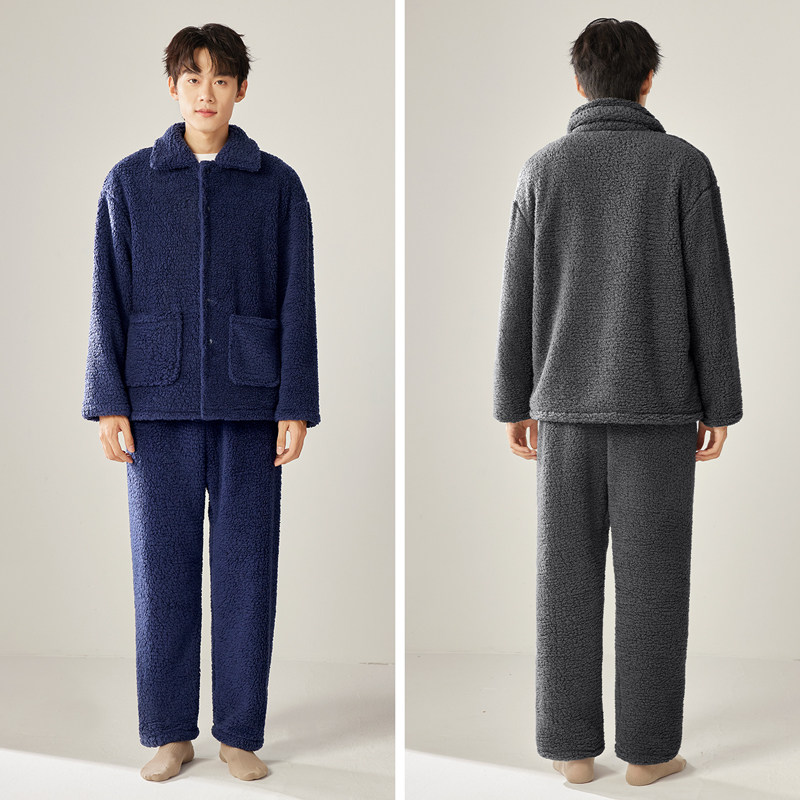 冬季珊瑚绒男士睡衣三层夹棉加厚加绒法兰绒秋冬款家居服保暖套装
