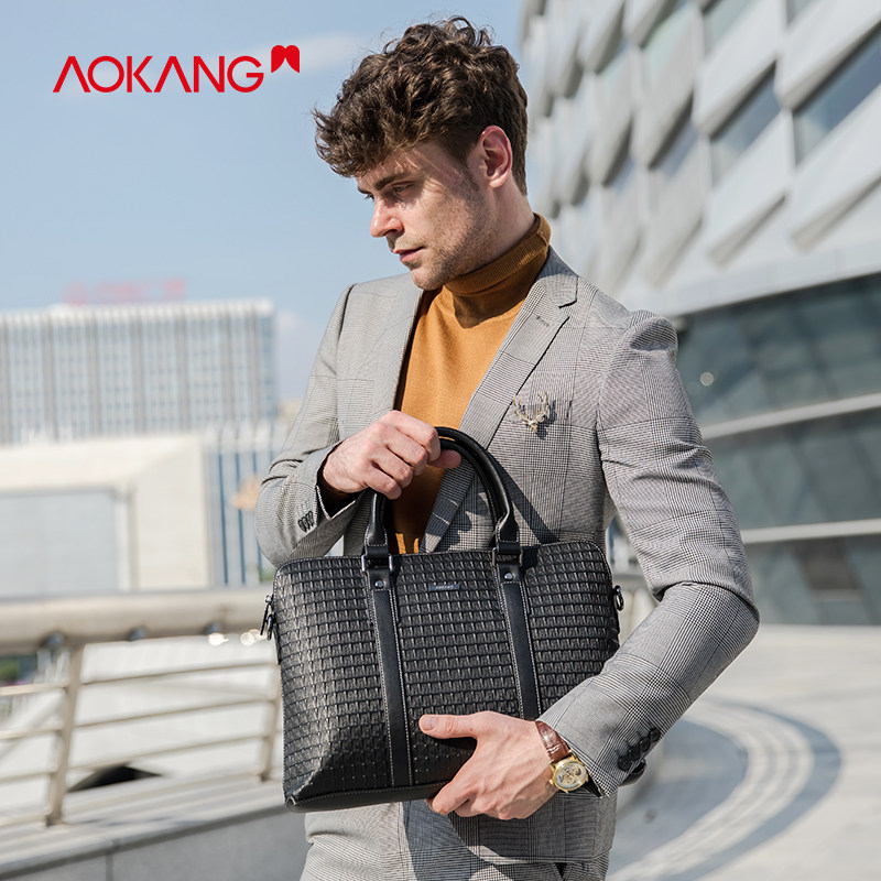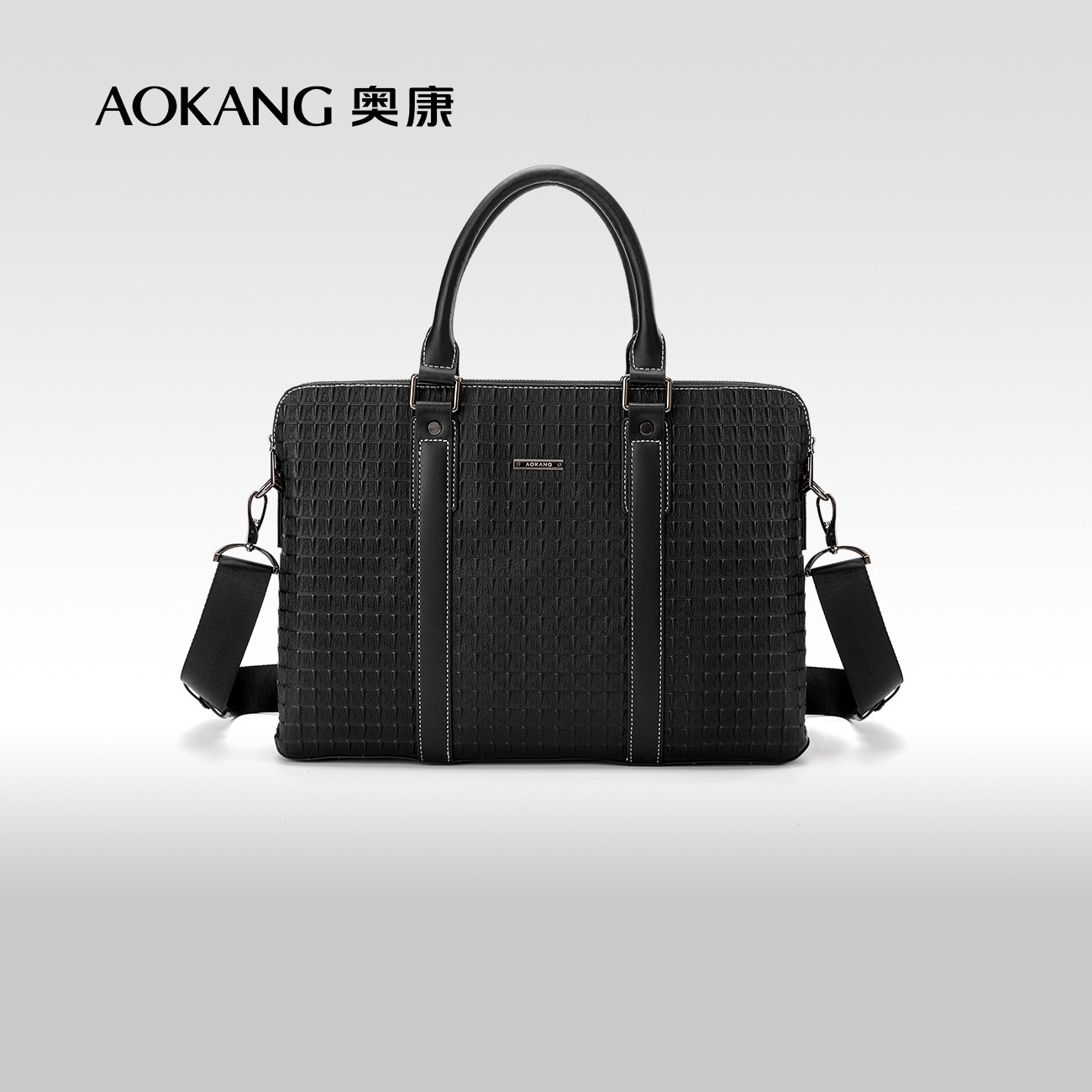 奥康男包横款手提包真皮牛皮公文包休闲单肩包斜挎包时尚商务包包