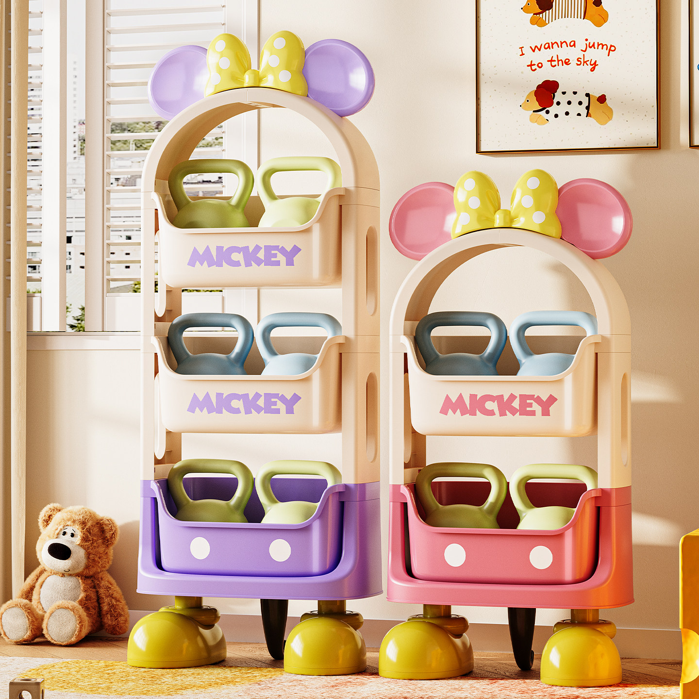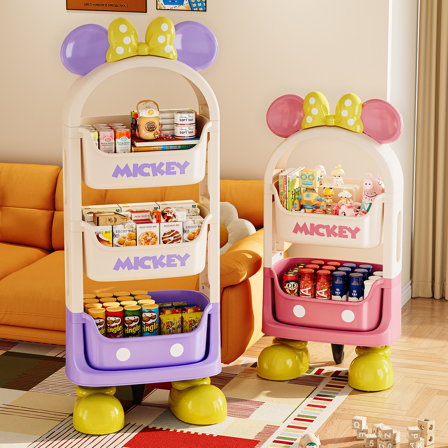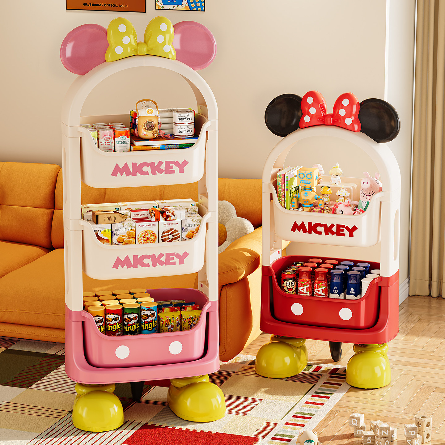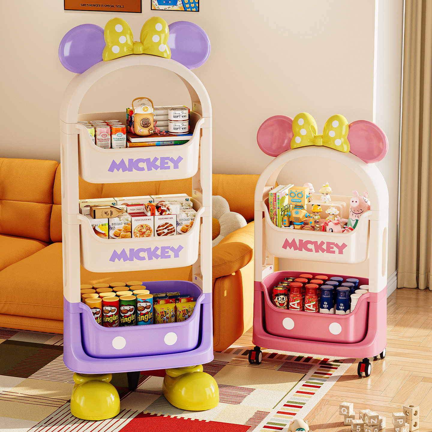 迪士尼联名米奇零食收纳架家用卧室床头柜客厅儿童玩具置物小推车