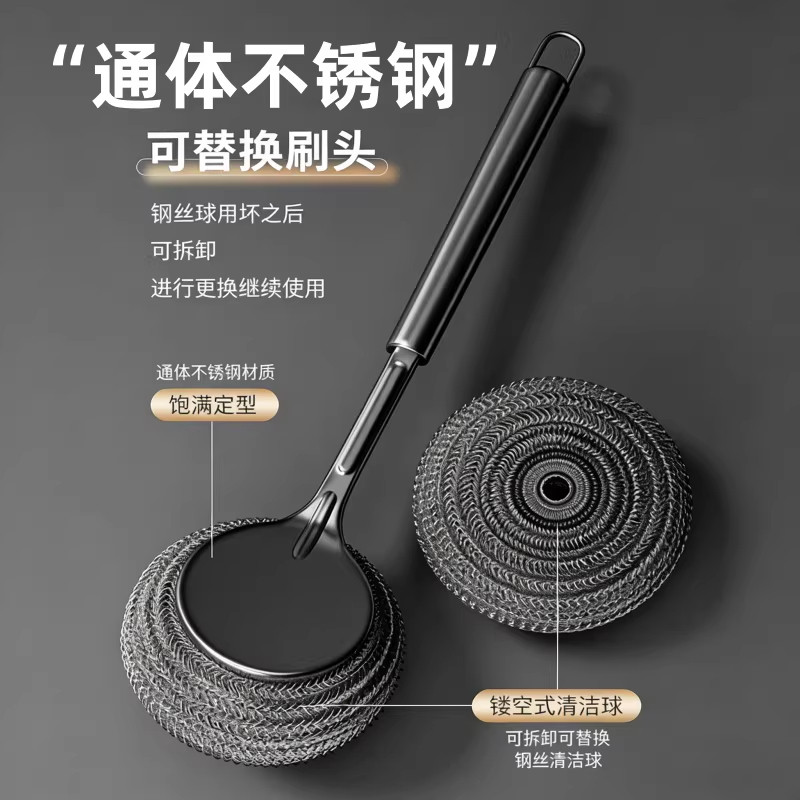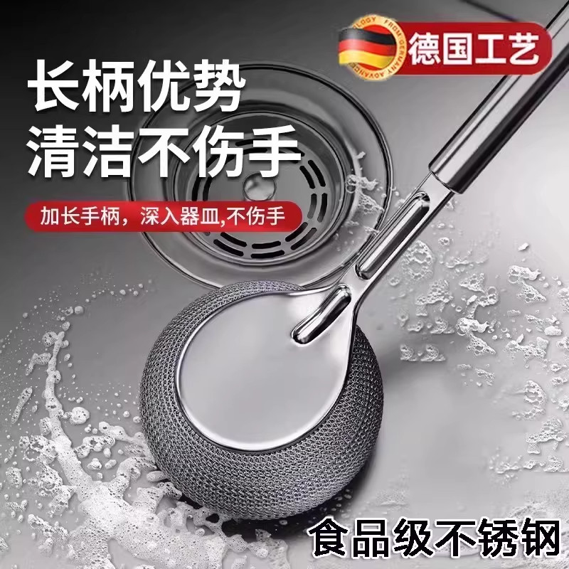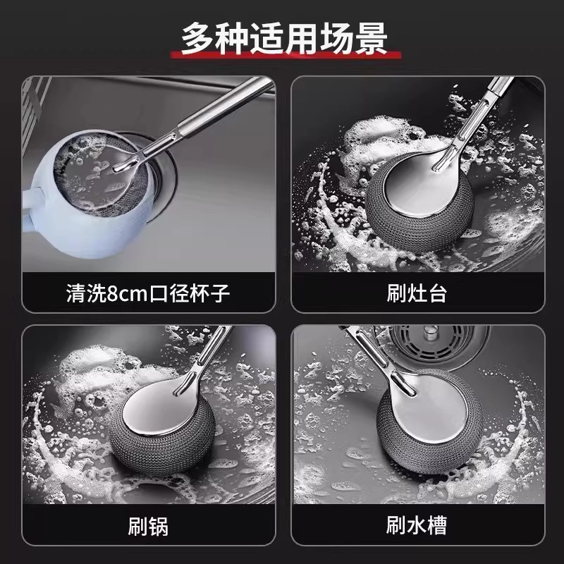 带柄钢丝球刷子长杆洗锅不生锈清洁厨房不伤手洗碗瓶罐不掉渣灶台