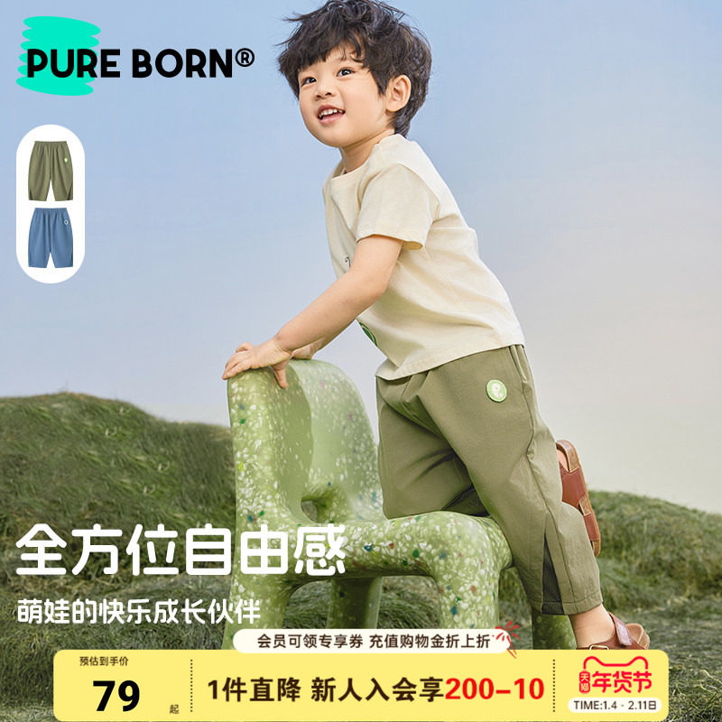 博睿恩儿童户外九分裤2025夏季新款男女宝宝运动防蚊休闲裤网眼