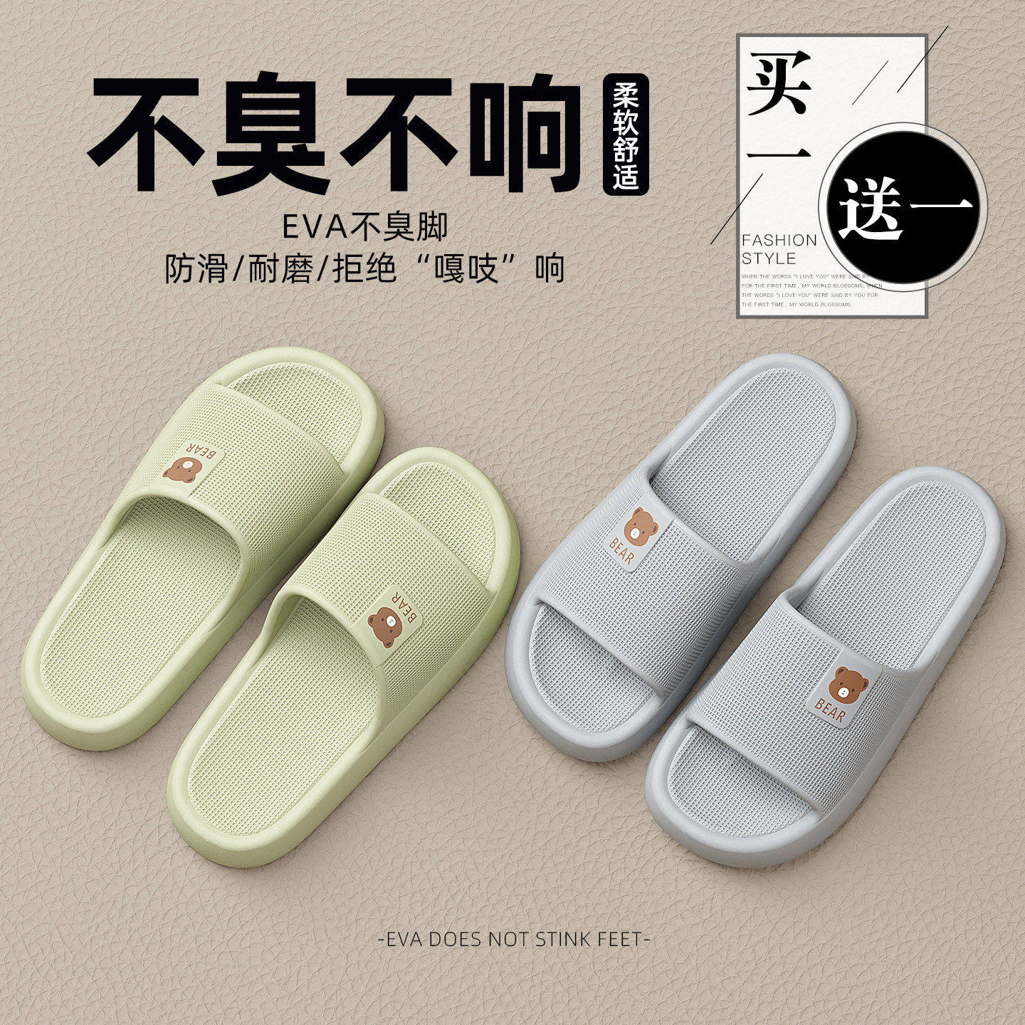 买1送1拖鞋女士2026夏季新款家居室内浴室防臭防滑eva情侣凉拖男