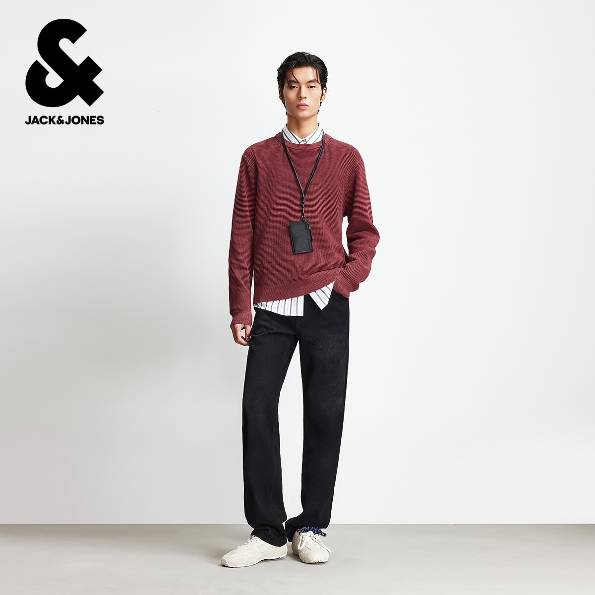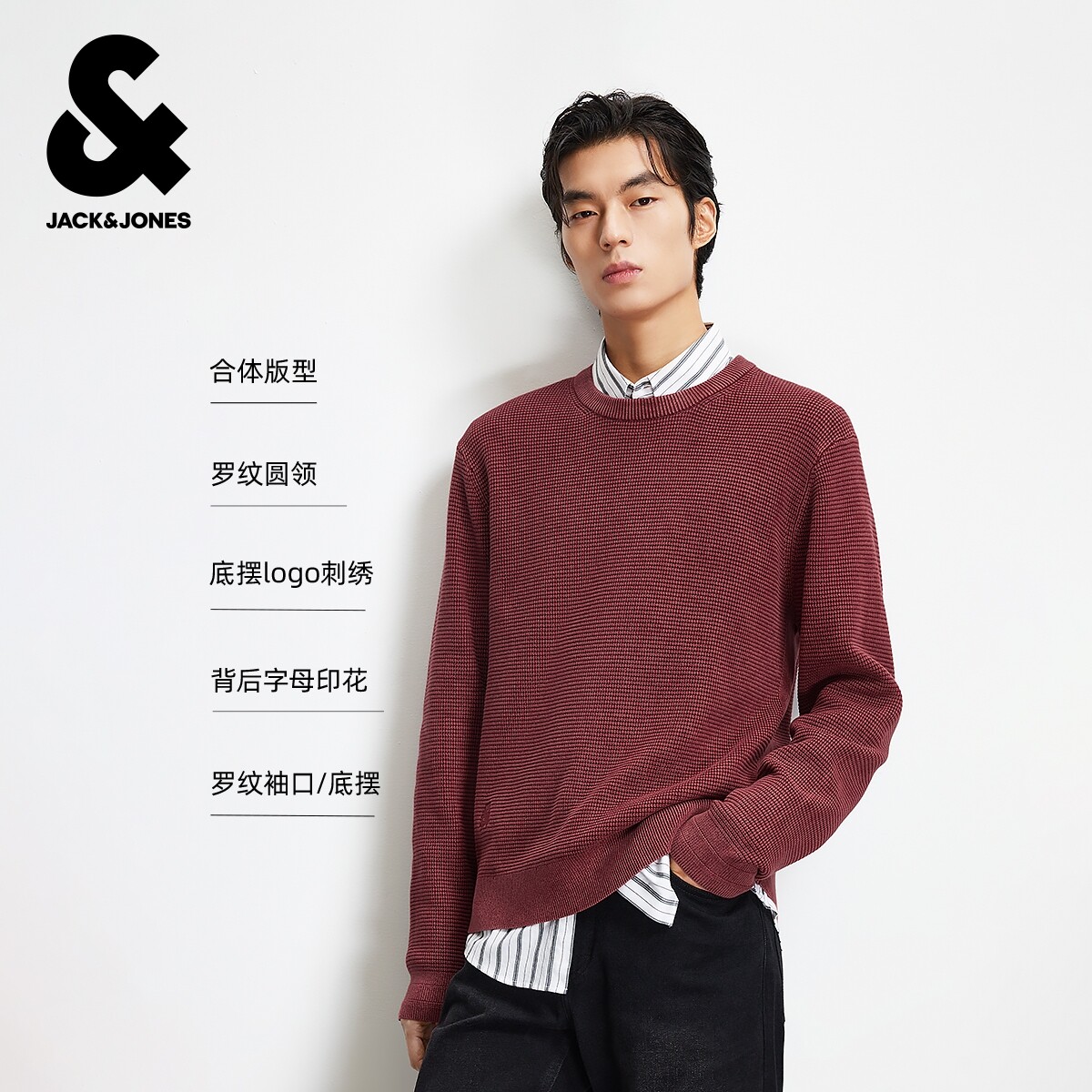 杰克琼斯奥特莱斯男装毛衣春秋季新款印花纯色时尚圆领长袖针织衫