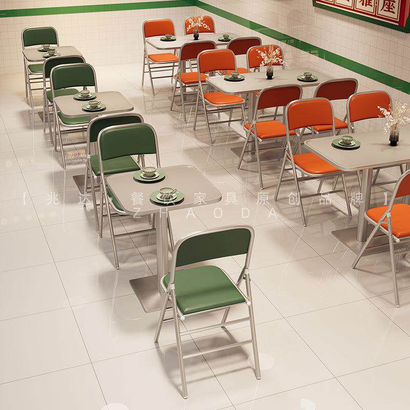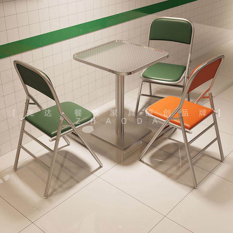 港风大排档不锈钢桌子椅子茶餐厅甜品店折叠椅网红店一桌四椅组合