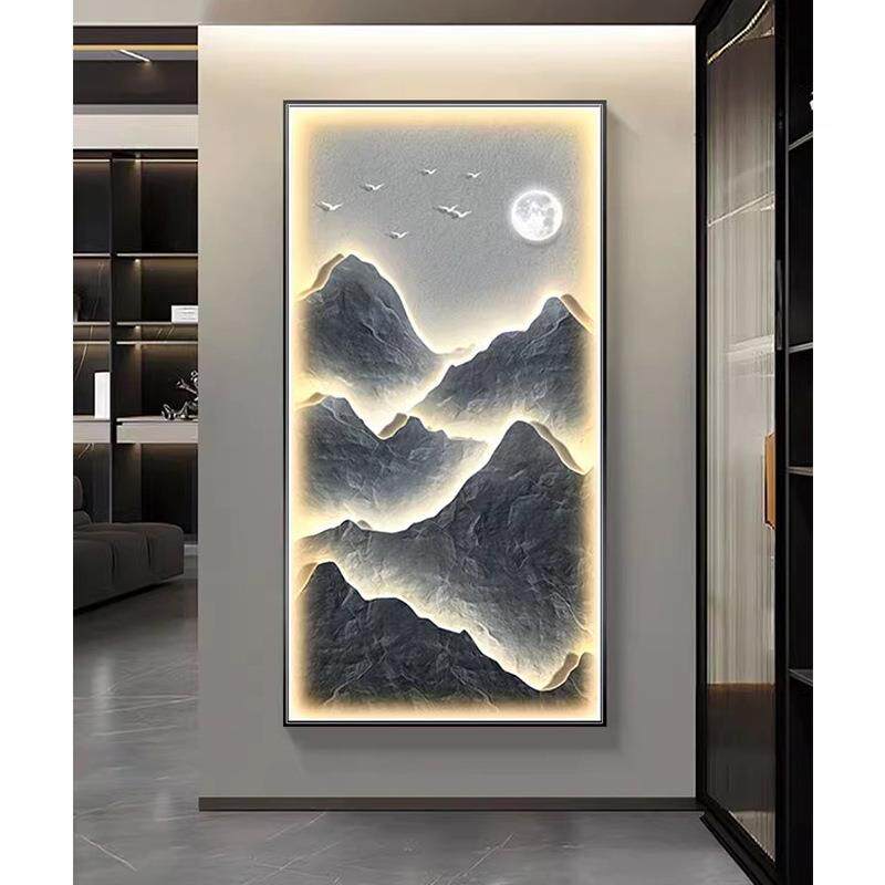 入户过道挂画现代正对门轻奢发光灯画玄关装饰画走廊墙面高档壁画