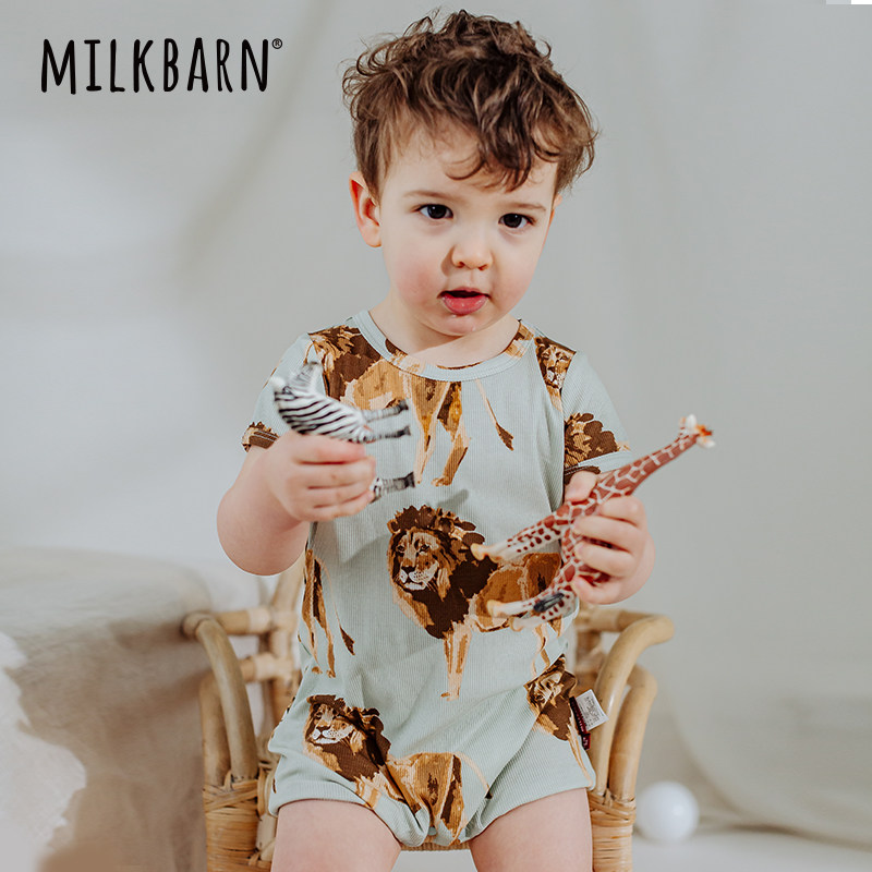 Milkbarn婴儿短袖短裤连体衣服宝宝夏季哈衣莫代尔爬爬服