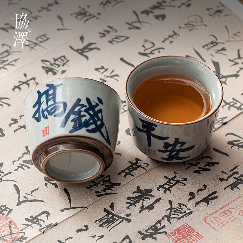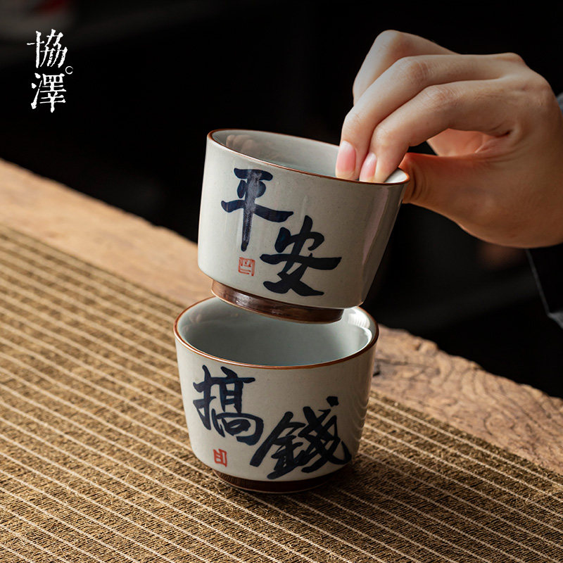 茶杯主人杯 个人专用单杯子 一人陶瓷小茶壶 手写手绘功夫茶具