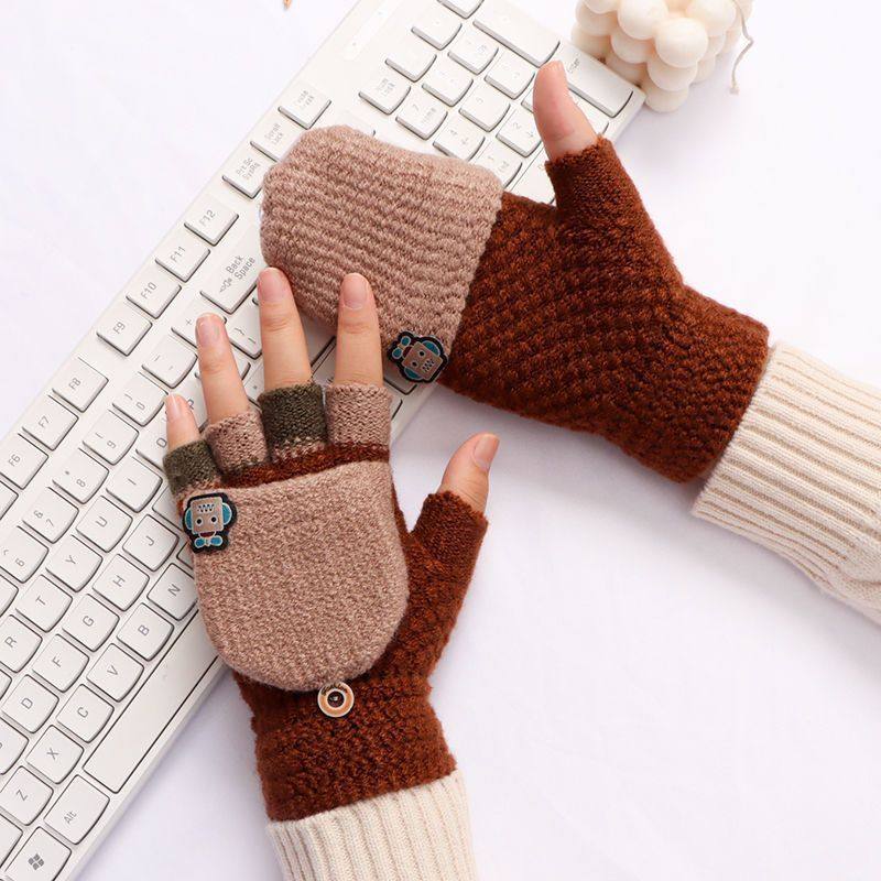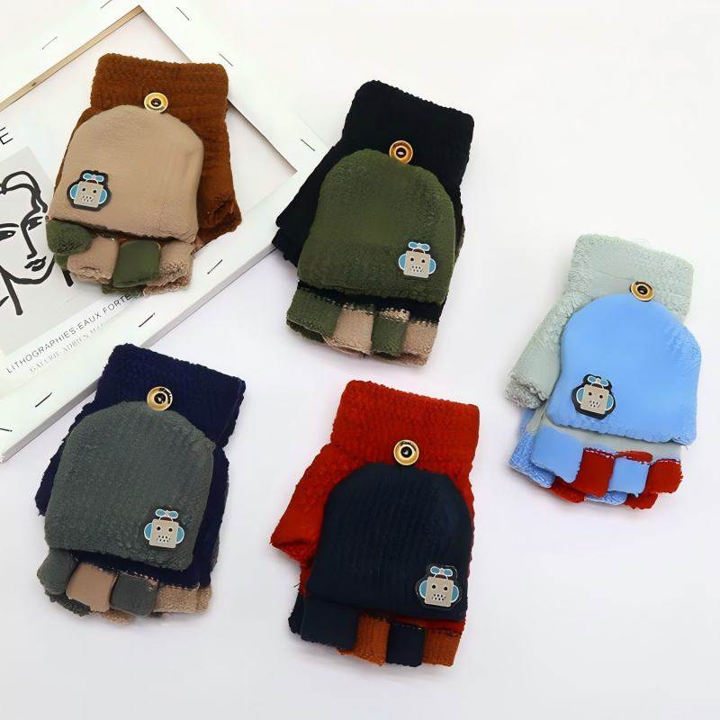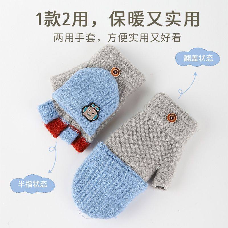 儿童手套男童秋冬季保暖写字翻盖小男孩小学生半指写作业大童冬天
