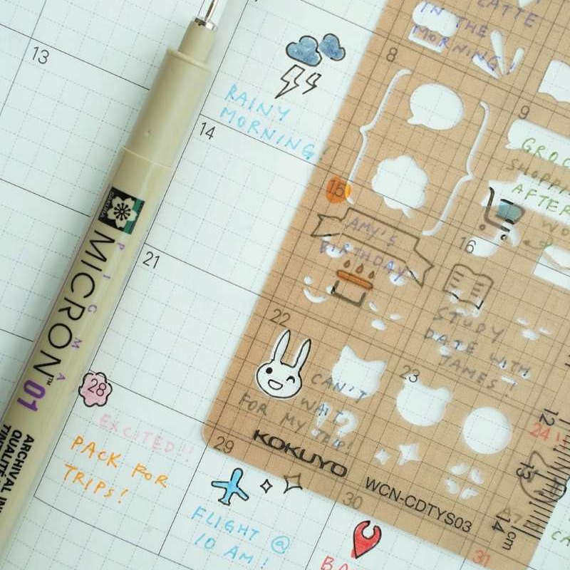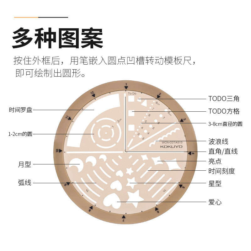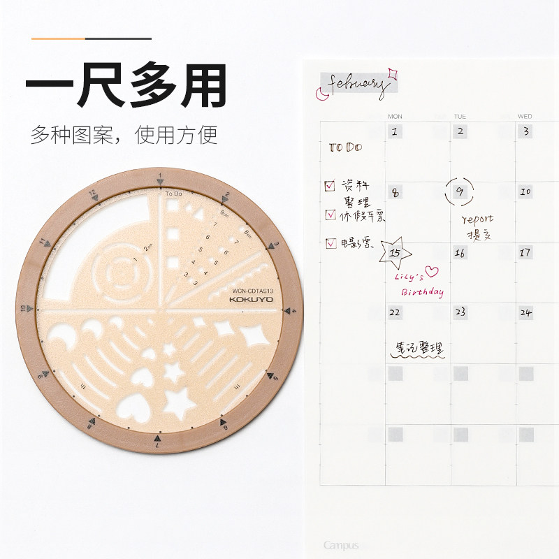 日本kokuyo国誉旋转可书写模板尺MO手账配件TODO便签索引尺ins风手帐素材绘图尺