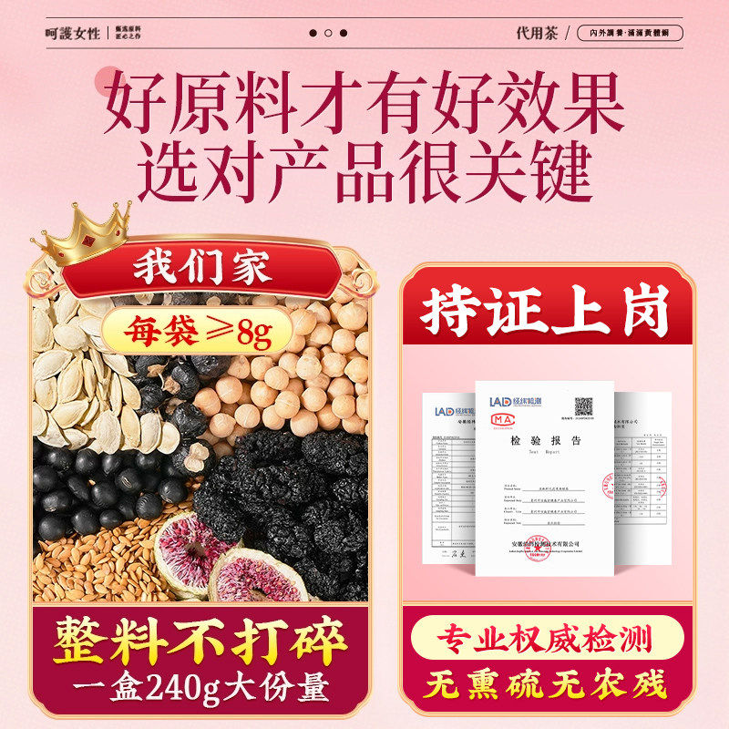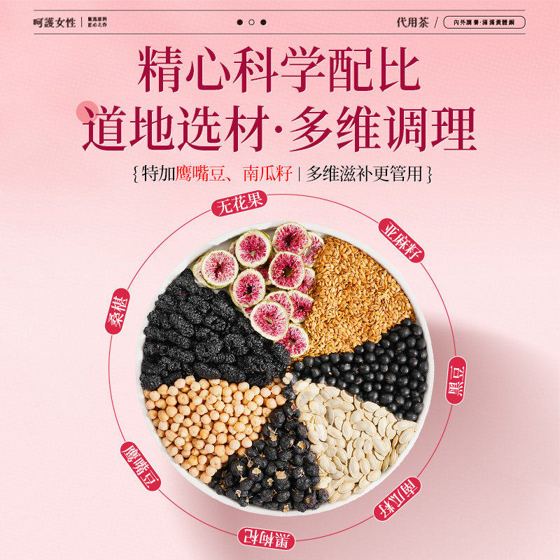 亚麻籽无花果干黄体酮黑豆枸杞桑葚养雌茶包女生泡水喝补充雌激素