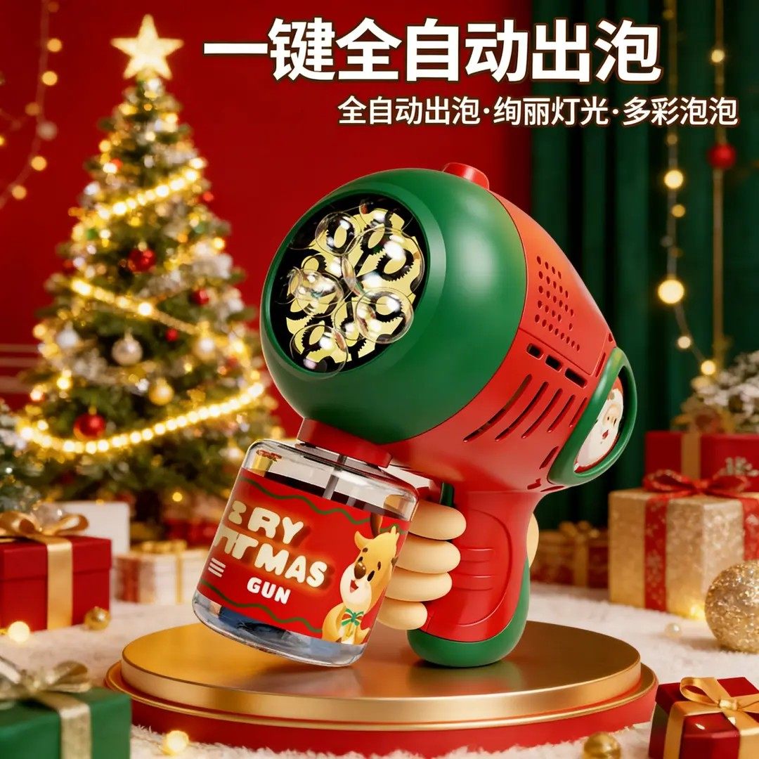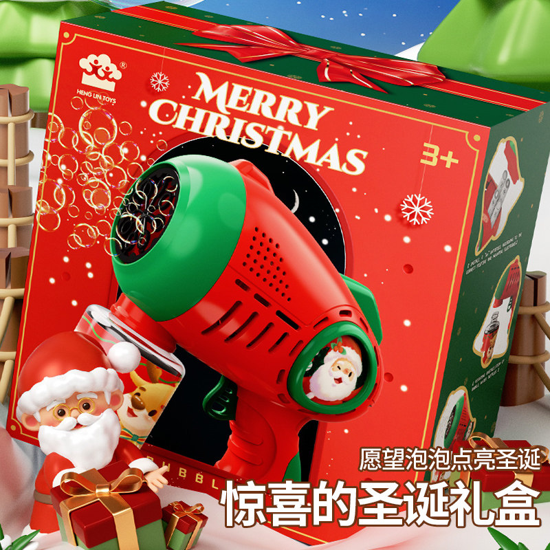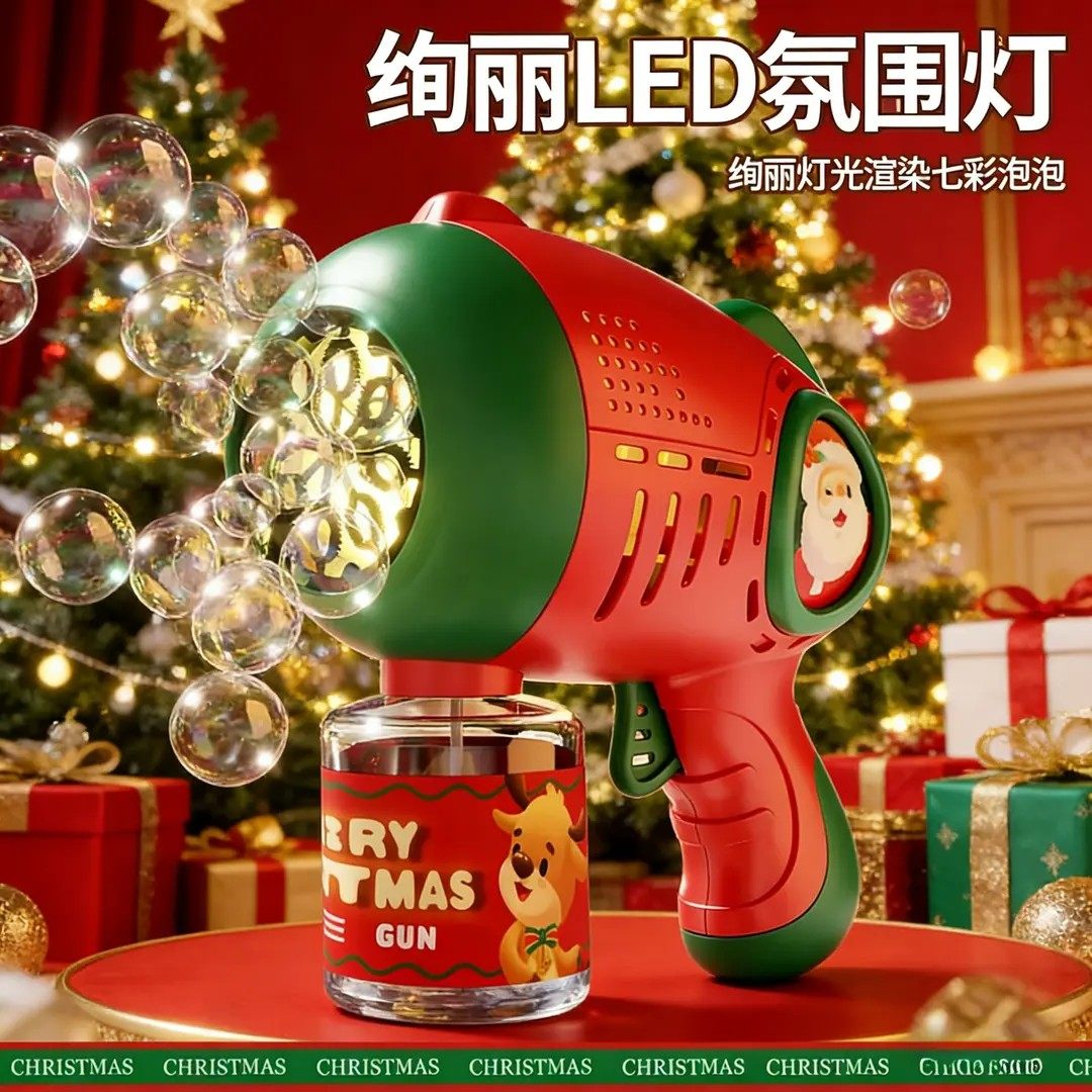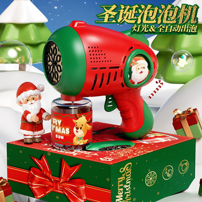 圣诞节礼物吹泡泡玩具儿童电动全自动枪圣诞老人道具网红爆款充电