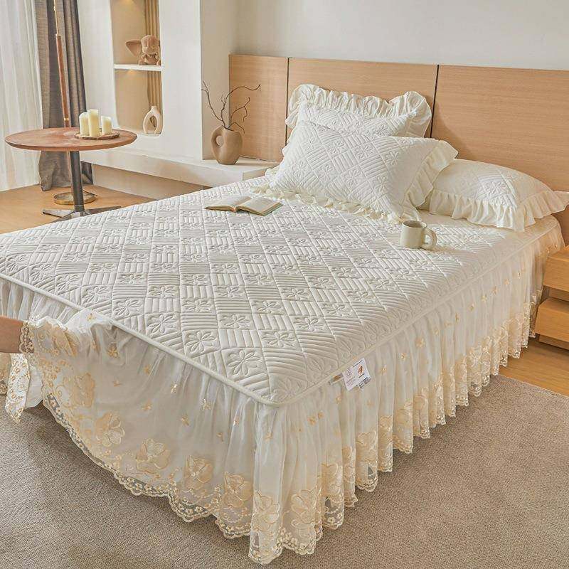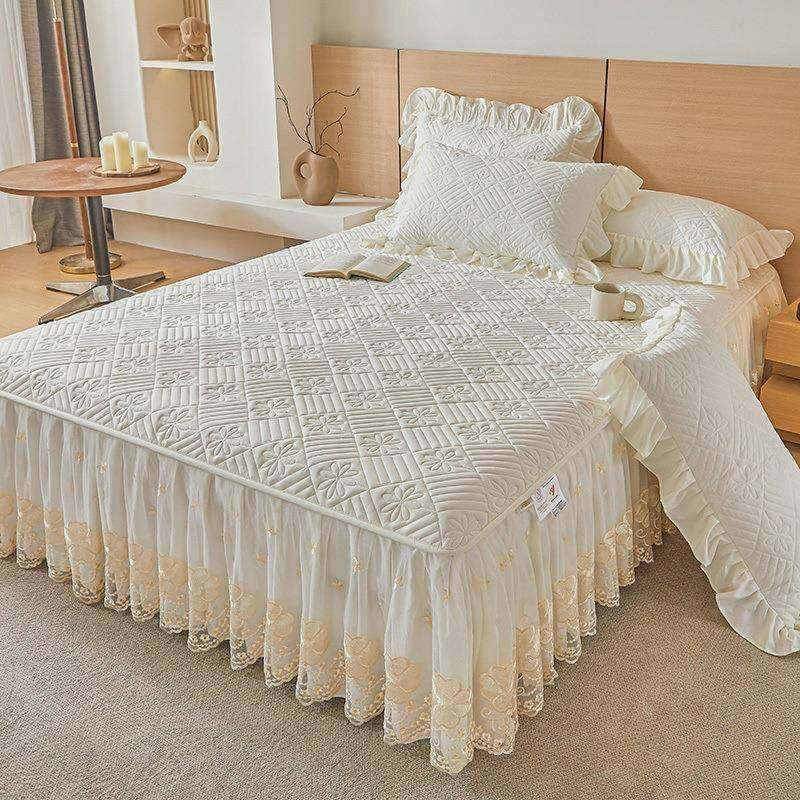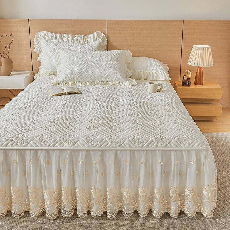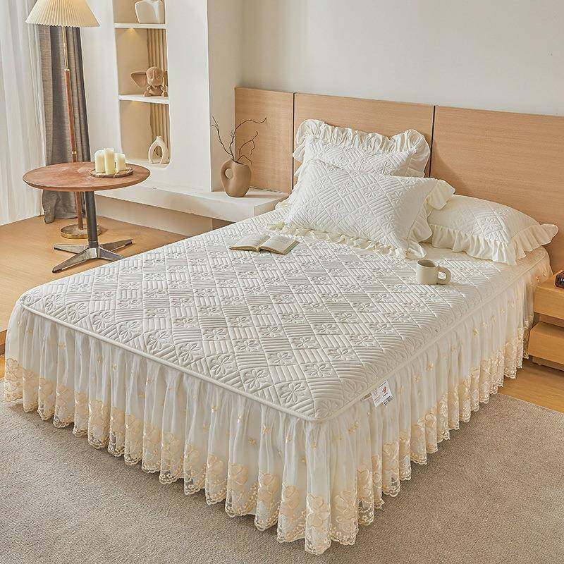 浪漫法式公主风蕾丝床裙夹棉加厚四季款防滑纯色床罩床盖裙式床单