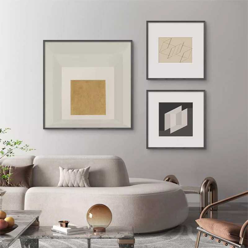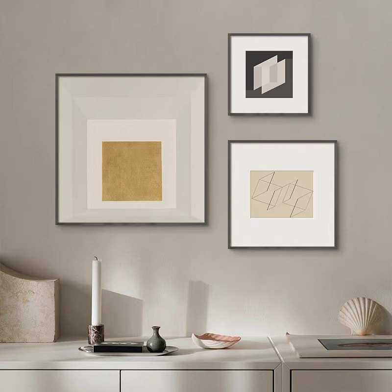 现代高级几何抽象挂画酒店样板间装饰画组合正方形客厅餐厅墙壁画