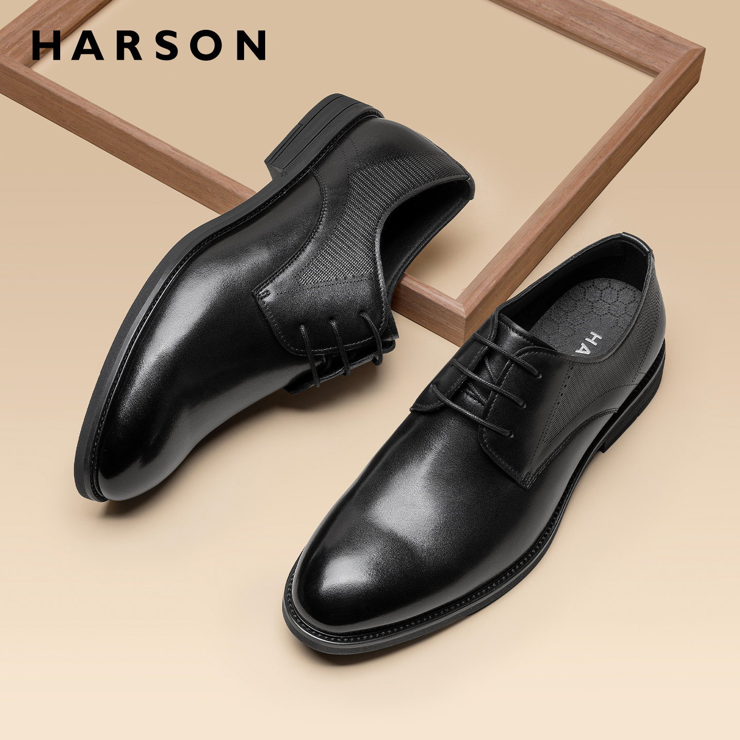 哈森西装男鞋新款商务正装英伦皮鞋高端职业鞋男真皮德比鞋男结婚