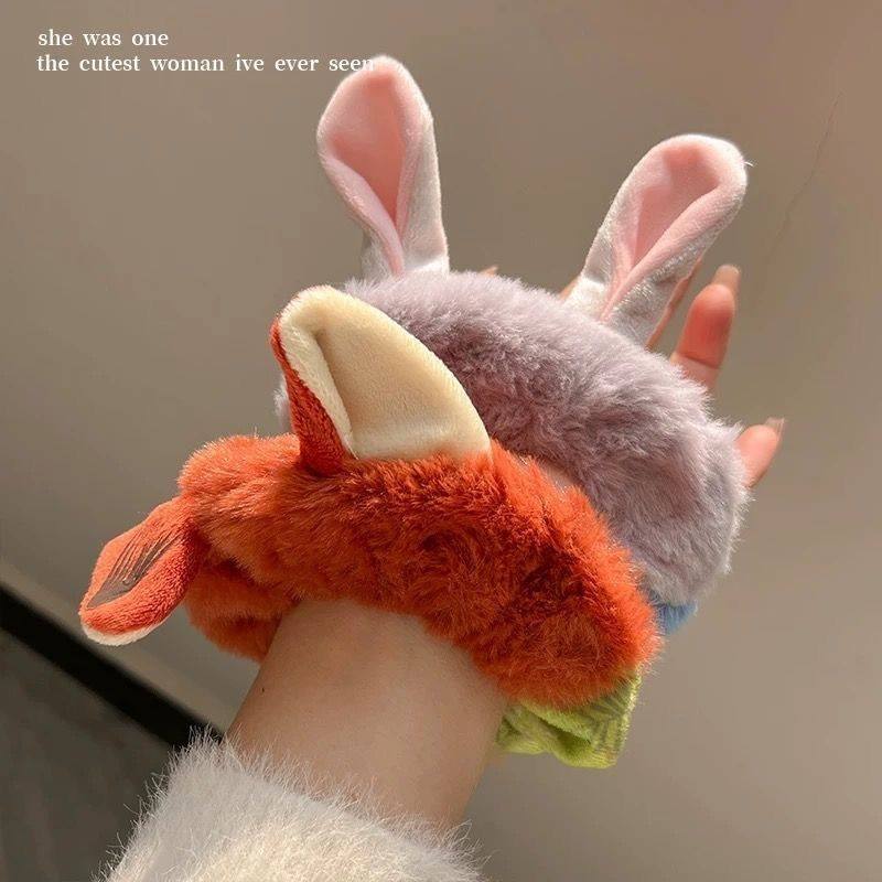 同款疯狂动物尼克耳朵毛绒发圈头绳秋冬皮筋可爱发绳卡通大肠发饰