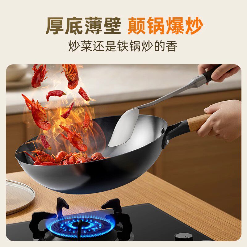 九阳铁锅无涂层炒锅家用炒菜锅不易粘锅电磁炉专用燃气灶旗舰店炊