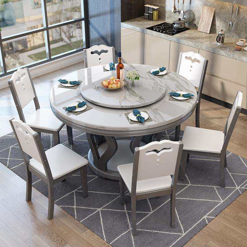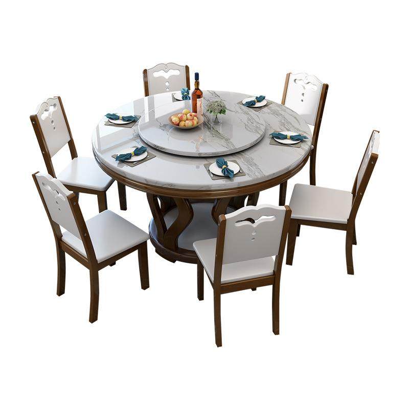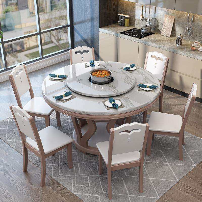 大理石实木餐桌椅组合现代简约家用圆形饭桌带转盘电磁炉火锅圆桌