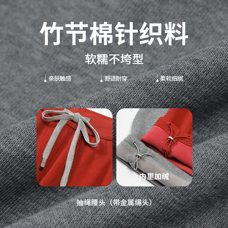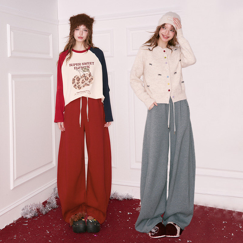 妖精的口袋红色加绒阔腿休闲裤女2025冬新款宽松新年战袍运动裤子