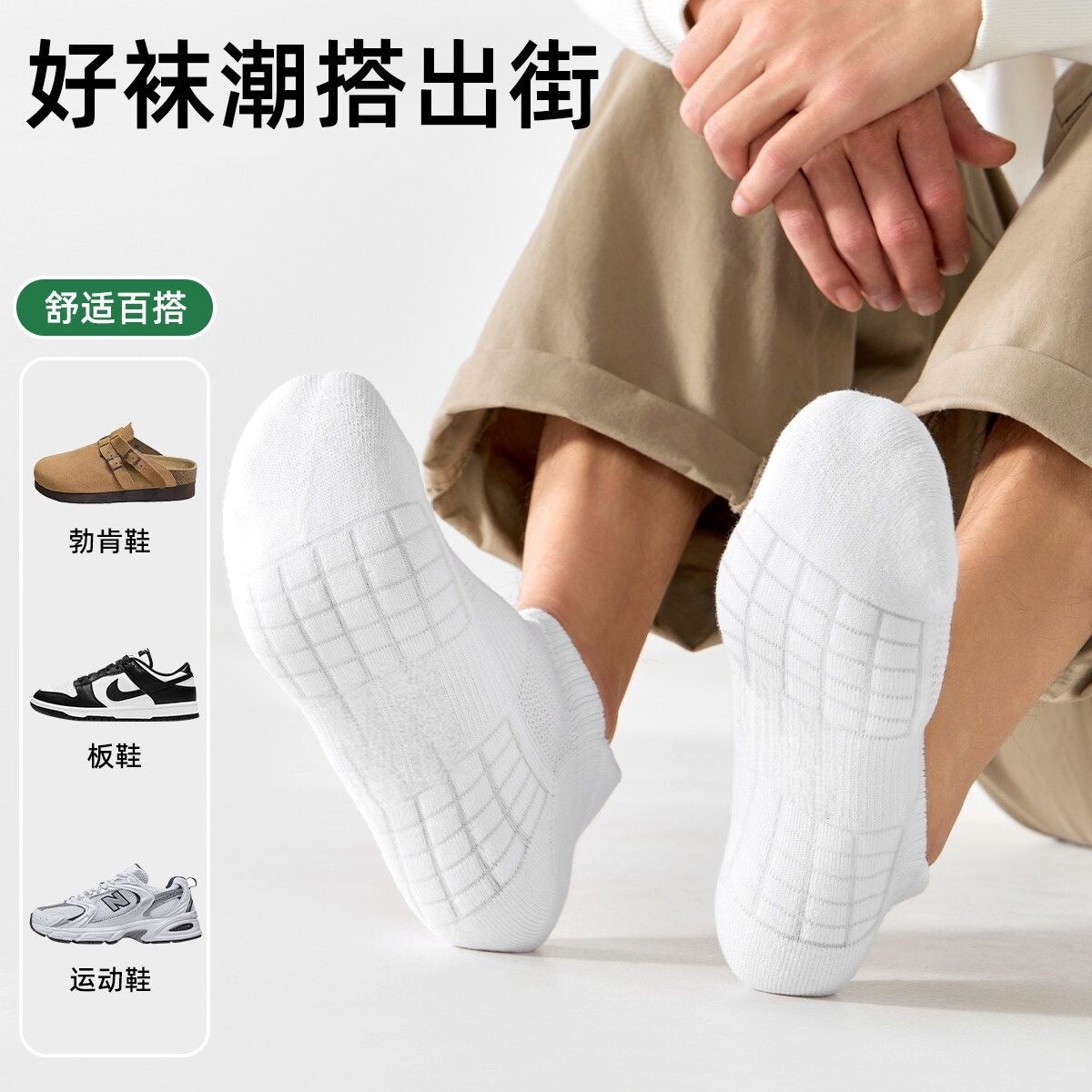 袜子男士短袜春夏薄纯棉纱线毛巾底透气篮球防臭运动船袜抗菌百搭