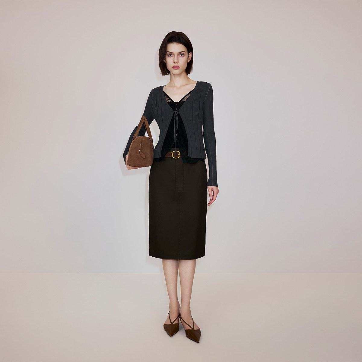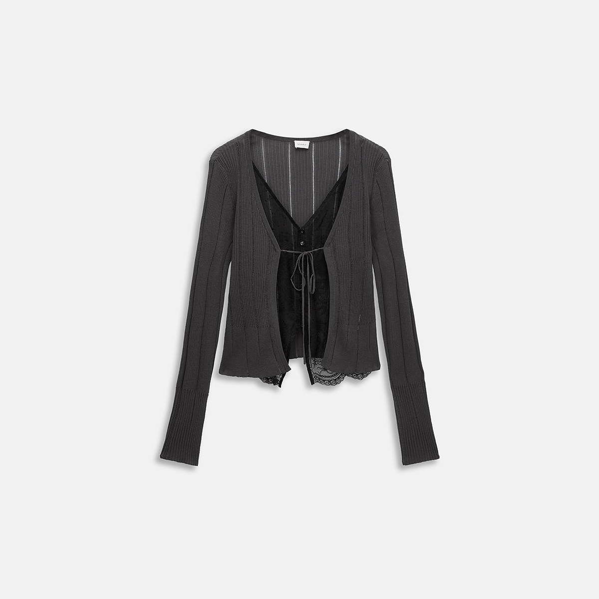 【新品】OCHIRLY欧时力针织外套女2026春夏醋酸棉假两件拼接蕾丝*