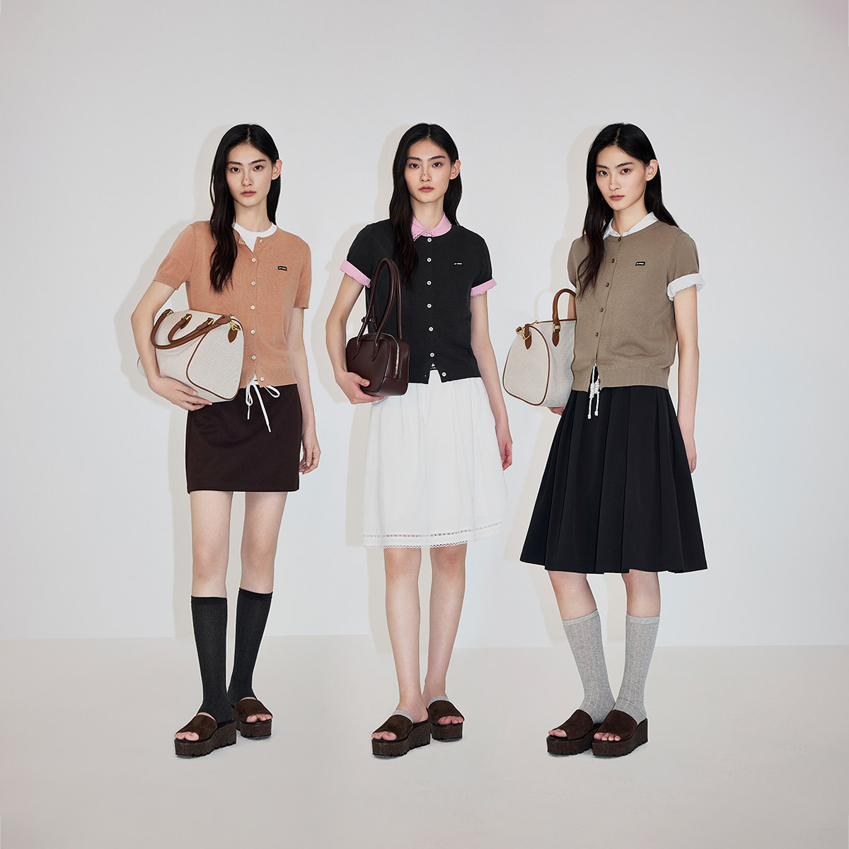 三福长袖上衣2025新款秋季圆领修身针织衫简约纯色内搭打底衫女装
