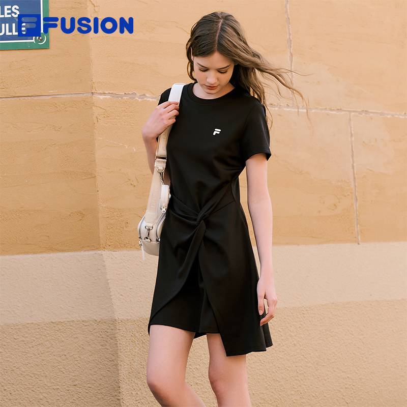 FILA FUSION斐乐潮牌女子针织连衣裙2026春季新款不规则下摆T恤裙