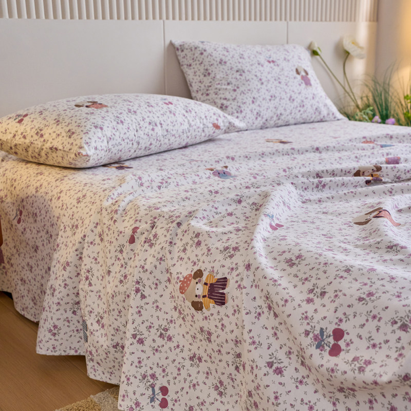 洁丽雅全棉水洗棉床单单件100纯棉被单枕套三件套学生宿舍单人