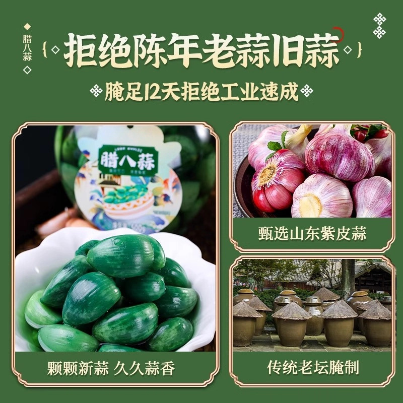 腊八蒜正宗密封罐山东特产紫皮大蒜头腌制翡翠辣叭蒜糖蒜腊八蒜